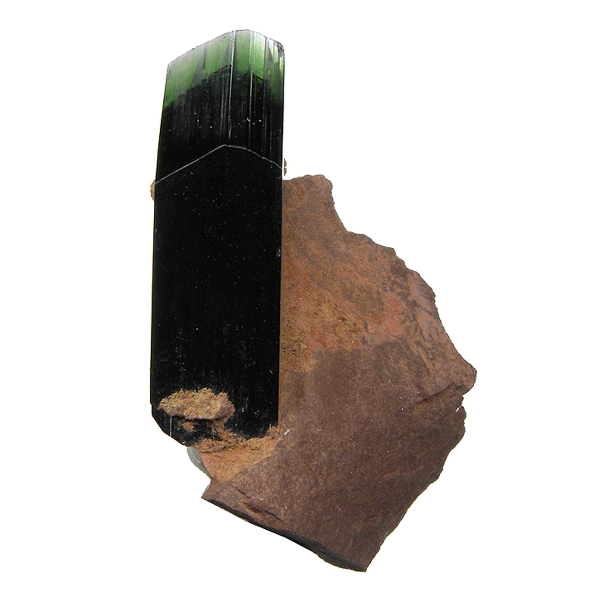 John Sinkankas said this about Vivianite in his book, Mineralogy : "The goal of collectors in respect to Vivianite specimens, is to obtain single crystals from the Bolivian localities." John listed at least a dozen localities for Vivianite in his book and stressed that lustrous, gemmy crystals are almost impossible to obtain from any locality. He also states that the "crystals are seldom sharply terminated". The termination on the above specimen is very sharp and highly lustrous.