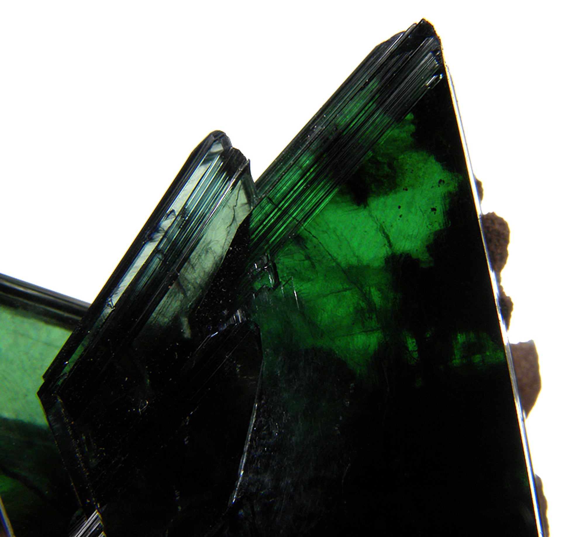 John Sinkankas said this about Vivianite in his book, Mineralogy : "The goal of collectors in respect to Vivianite specimens, is to obtain single crystals from the Bolivian localities." John listed at least a dozen localities for Vivianite in his book and stressed that lustrous, gemmy crystals are almost impossible to obtain from any locality. He also states that the "crystals are seldom sharply terminated". The terminations on the above specimen are very sharp and highly lustrous.