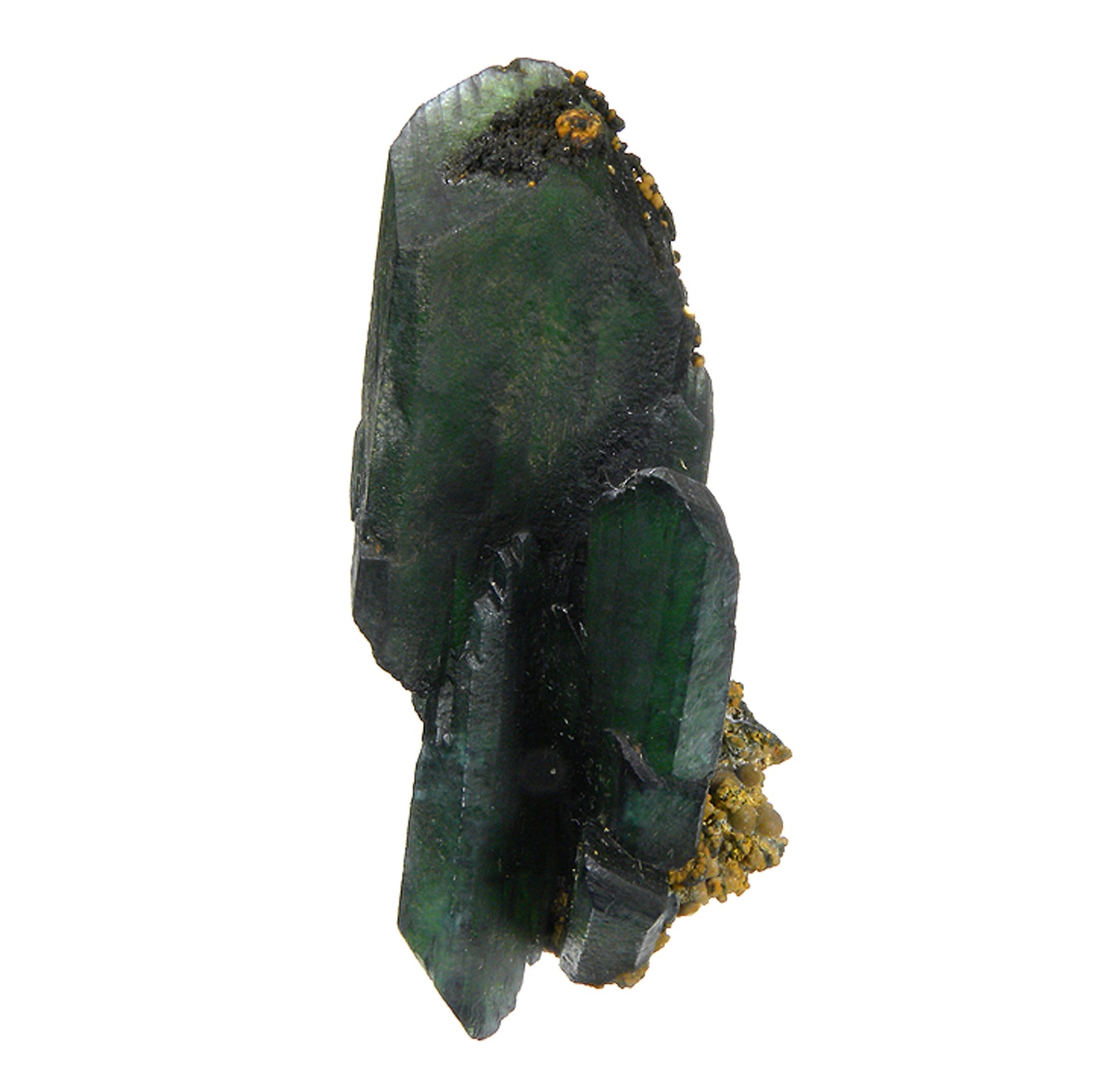 This small cabinet size piece features a few beautiful, relatively sharp, gemmy, blue green color, prismatic crystals of Vivianite (some are actually doubly terminated!) associated with botryoidal Wavellite which is coated/replaced by Limonite. This material is rarely seen in today's market and this particular specimen is at least 35 years old. A great aesthetic display specimen of this well-known phosphate from a world-famous locality