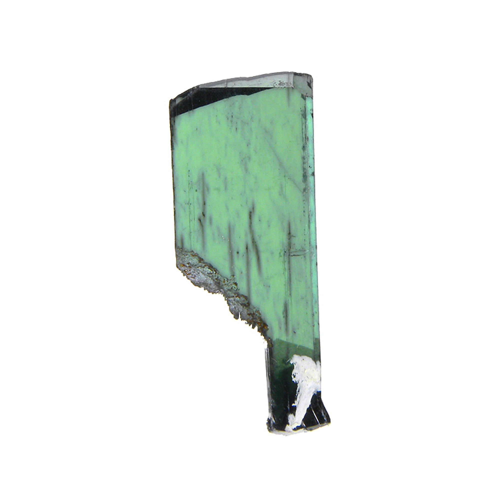 A very sharp, GEM quality, rather lustrous, rich emerald green, thin, prismatic crystal with a beautiful termination. Great quality all the way around, and certainly better quality than a lot of Vivianites from this mine from the standpoint of gemminess and color.