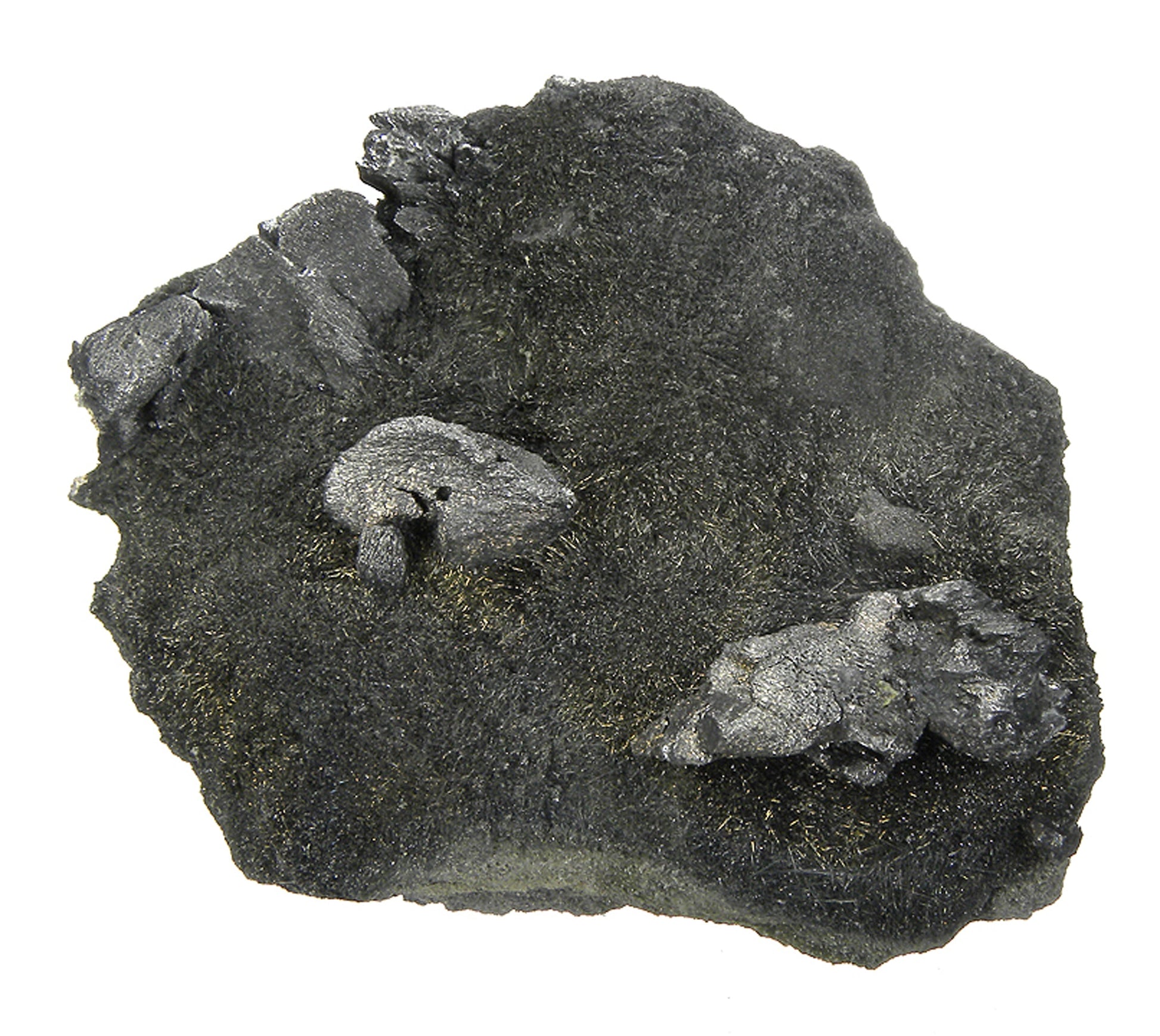 This small cabinet size specimen features relatively sharp, striated, steel grey crystals of this rare lead, silver, antimony sulfosalt which are associated with rare lustrous acicular Zinkenite crystals on matrix! The majority of the specimens from this find were merely single crystals off matrix, but crystals on matrix such as this specimen only existed in a very small percentage of the pieces found. Most of the crystals are in excellent condition, with only a few contacts here and there. Considering the rare Zinkenite association, AND the fact that the crystals are on matrix, the small amount of damage is forgivable, especially when compared to older specimens from 70 years ago which were riddled with damage and had poor aesthetics.