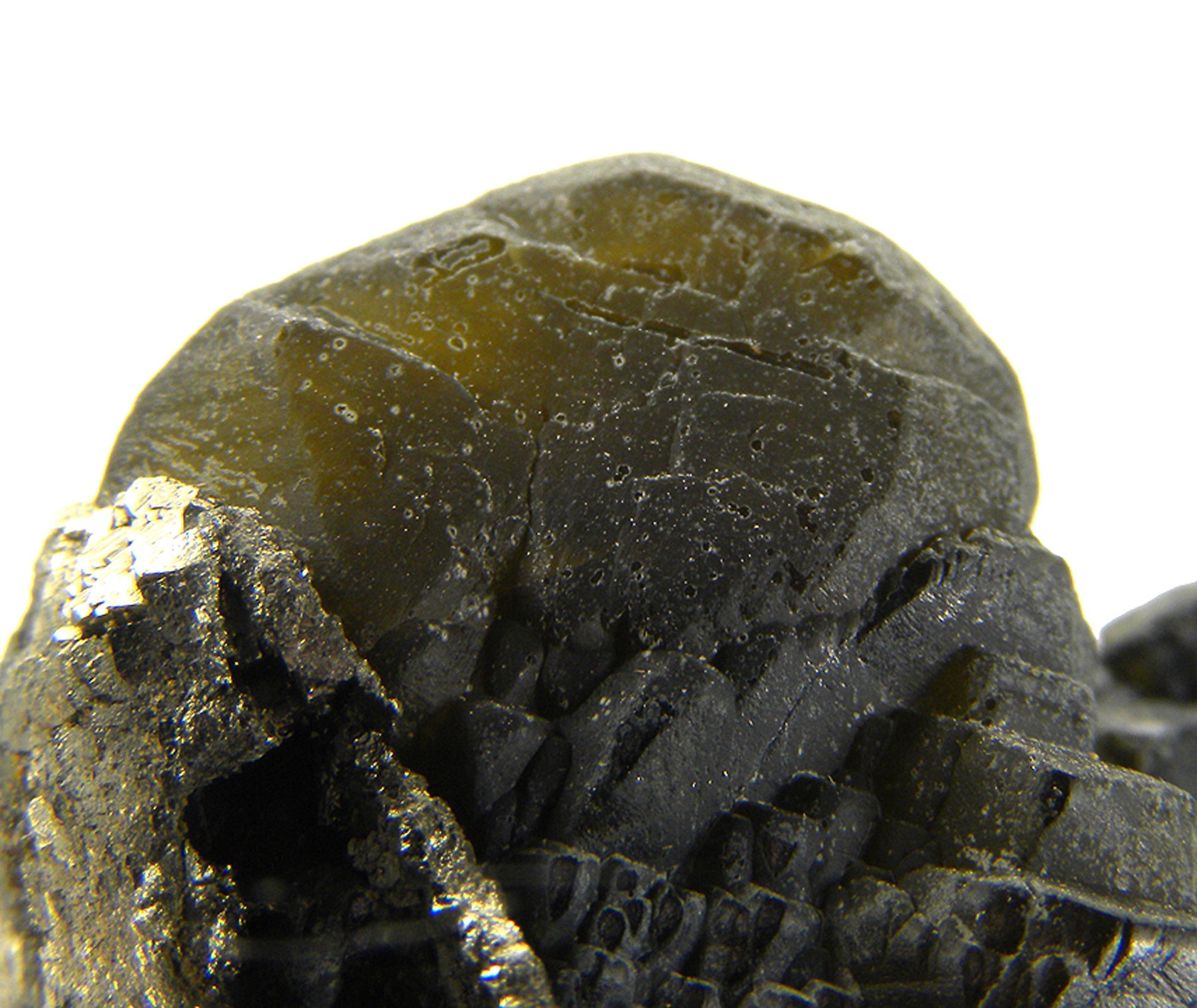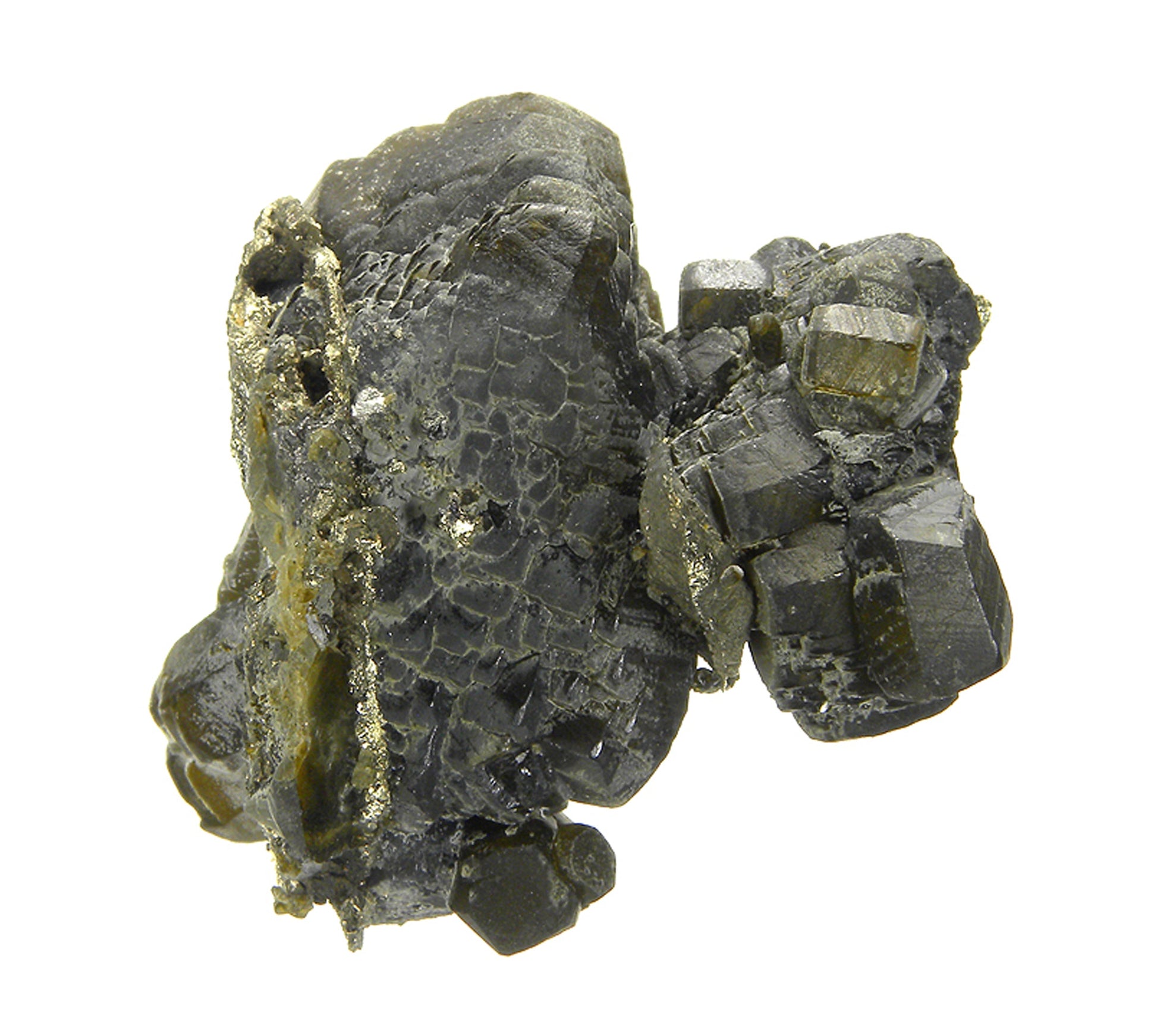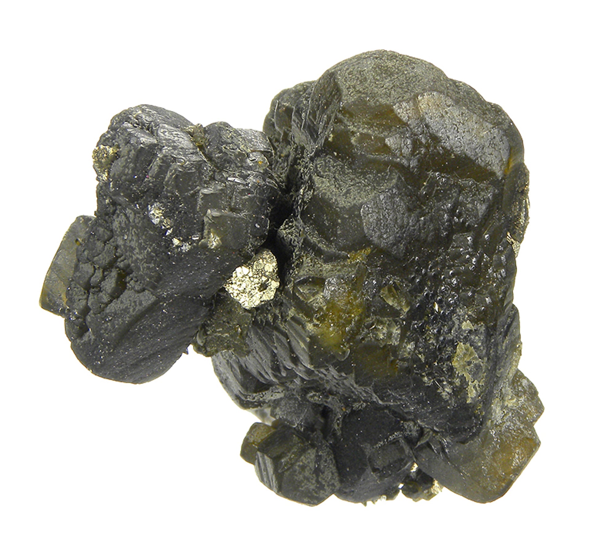 This piece features a few excellent quality, sharp, gemmy, greenish brown modified rhombic/hexagonal crystals of Siderite which are associated with crystals of lustrous, metallic Pyrite (pseudomorphs after compressed rhombohedra of Siderite). For Siderite, the quality is impressive for Bolivia, as I rarely have seen such sharp and gemmy crystals from any Bolivian locality. So far, this find was very limited, so if you're a collector of Bolivian minerals, be sure to pick this one up.
