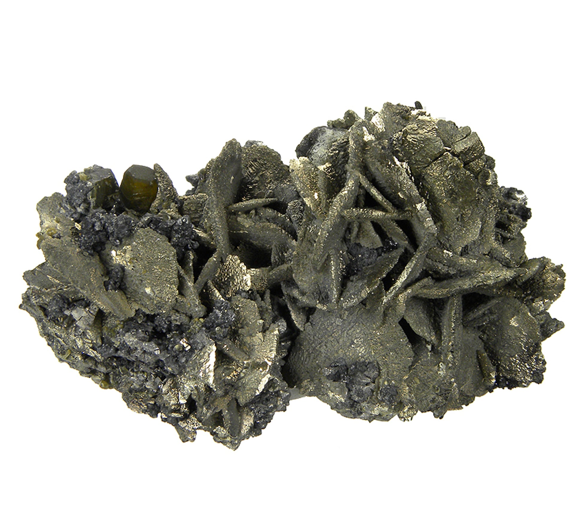 This piece features a few excellent quality, sharp, gemmy, greenish brown modified rhombic/hexagonal crystals of Siderite which are sitting atop crystals of lustrous, metallic Pyrite (pseudomorphs after compressed rhombohedra of Siderite) which are associated with minor grey crystals of the rare sulfide, Stannite. For Siderite, the quality is impressive for Bolivia, as I rarely have seen such sharp and gemmy crystals from any Bolivian locality. So far, this find was very limited, so if you're a collector of Bolivian minerals, be sure to pick this one up.