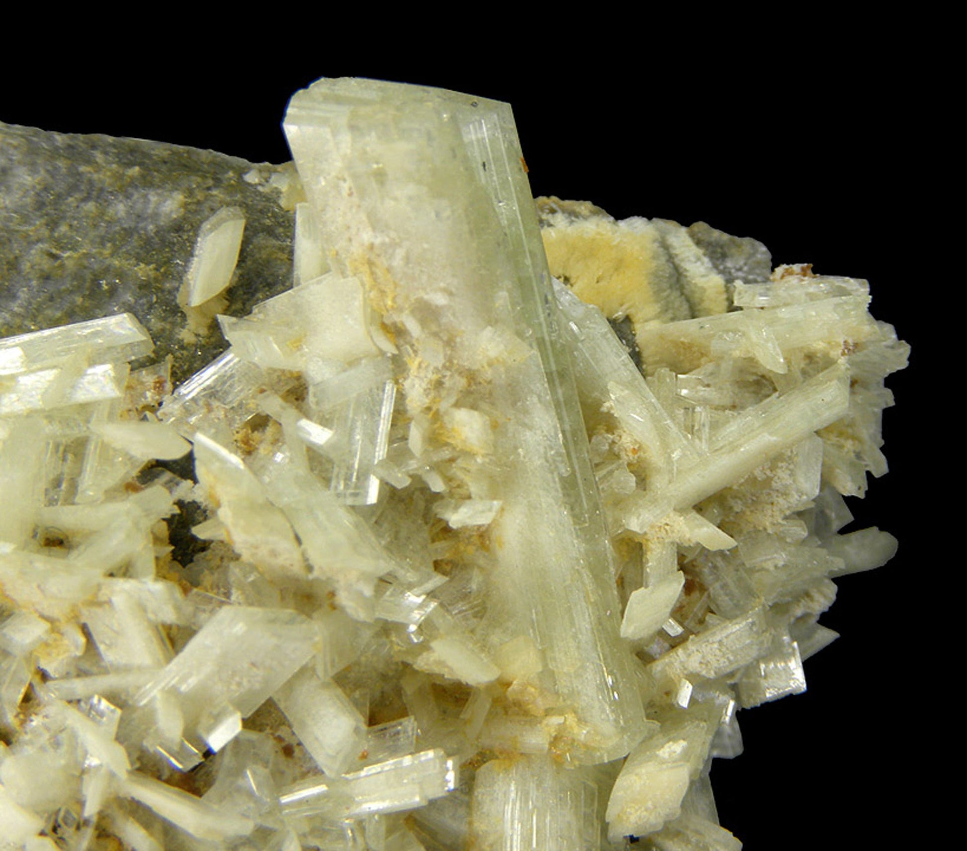 This remarkably attractive specimen features beautiful lustrous, light green Paravauxite crystals and tan colored Sigloite crystals on matrix. Sigloite forms as an alteration of Paravauxite. This specimen is from the type locality for both species!