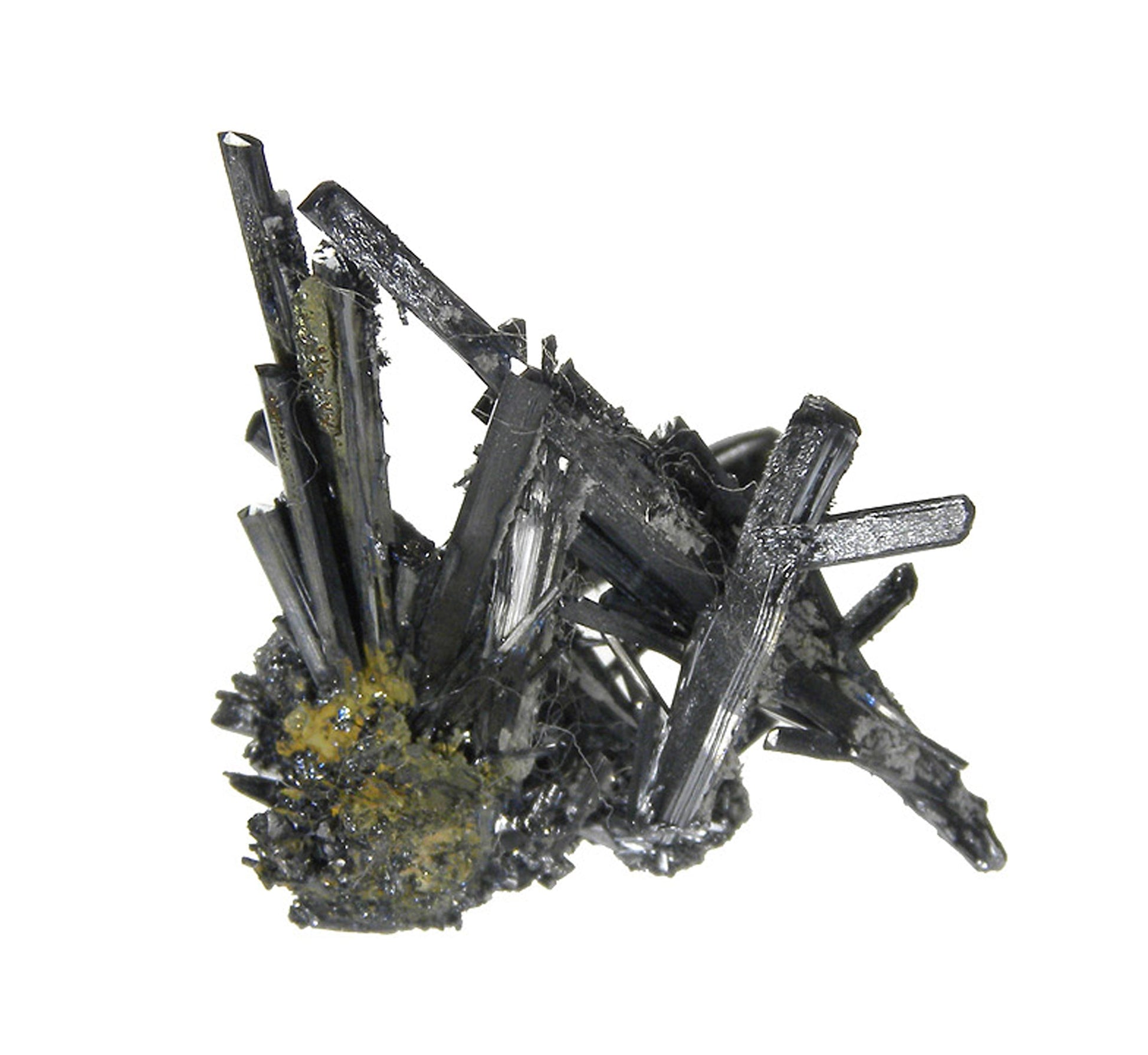 This specimen comprises several highly lustrous, sharp, metallic silvery sword shaped crystals of Stibnite forming a very aesthetic crystal “spray”. Virtually no notable damage that I can see with the naked eye. A great classic Bolivian Stibnite specimen. This piece came out in the early 1980’s when there was a large find of some superb Stibnites from this mine.