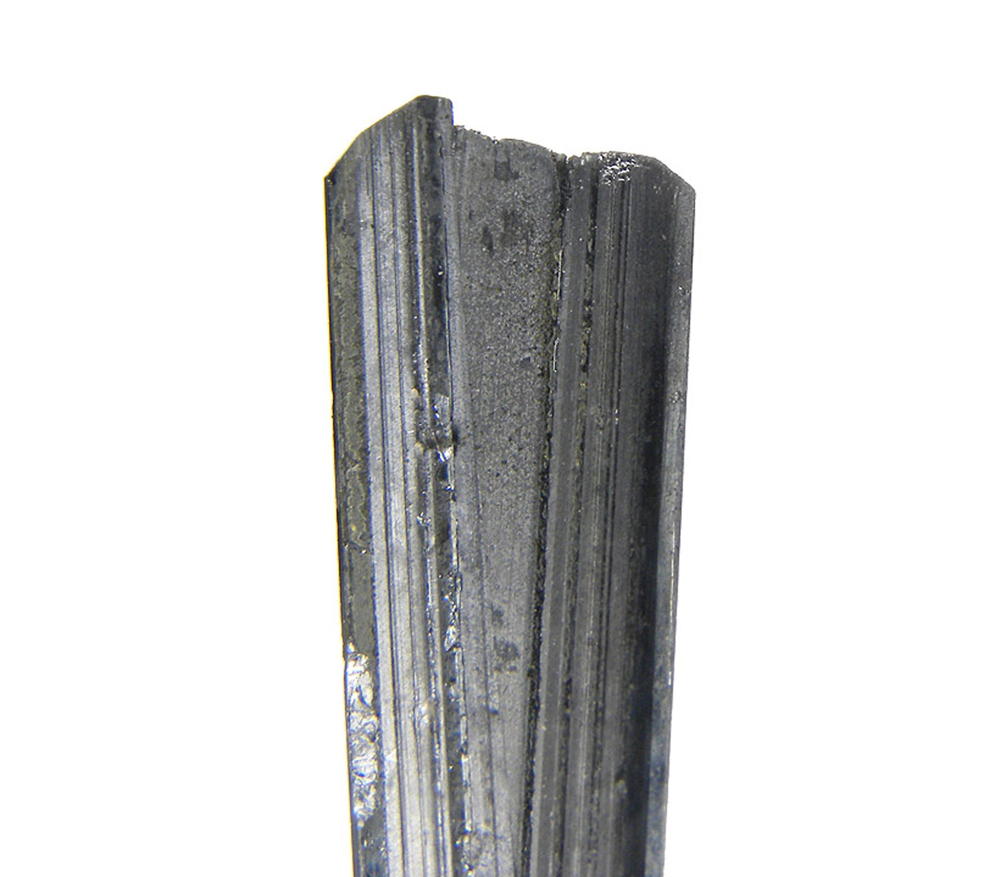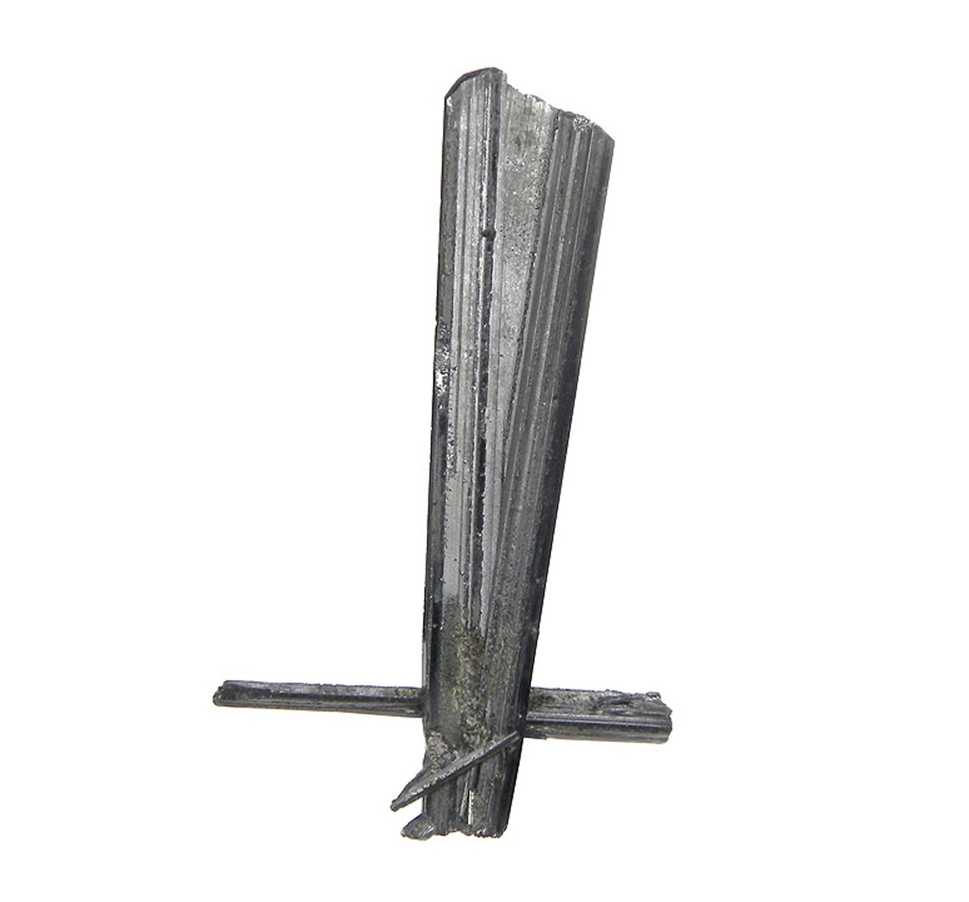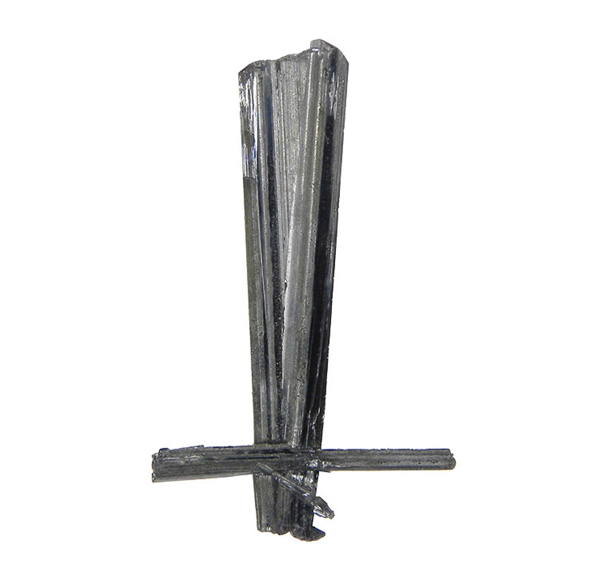 This is a superb, lustrous, striated, prismatic “sword”-shaped, silver-grey crystallized “spray”. Virtually no notable damage that I can see with the naked eye. A great classic Bolivian Stibnite specimen. This piece came out in the early 1980’s when there was a large find of some superb Stibnites from this mine.