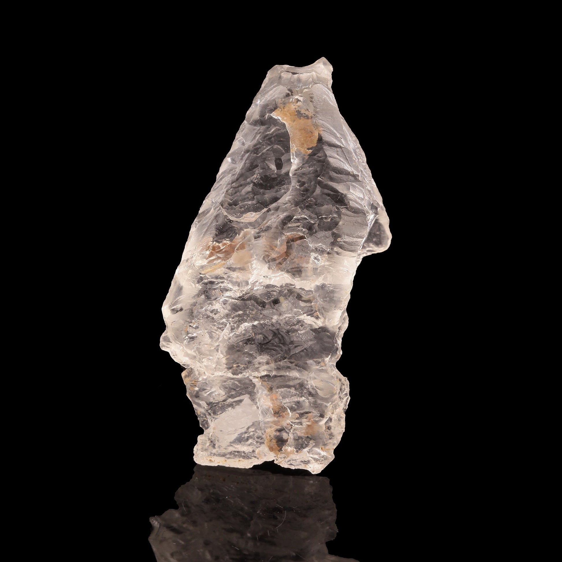The piece is a hydrothermally etched, "floater" crystal with gorgeous flowing and stepped surface features on all sides. The entire specimen is nearly 100% WATER CLEAR, with only a few minor sub-surface inclusions that keep it from being completely transparent. I love the triangular shape of the upper portion of the piece, retaining a bit of its original crystal morphology, but still giving the piece an ethereal quality. It almost feels like it could be alive if you look at it just right. This piece was mined in 2005 and is one of the more interesting and unusual Petalites that I've had to offer from anywhere in Myanmar.
