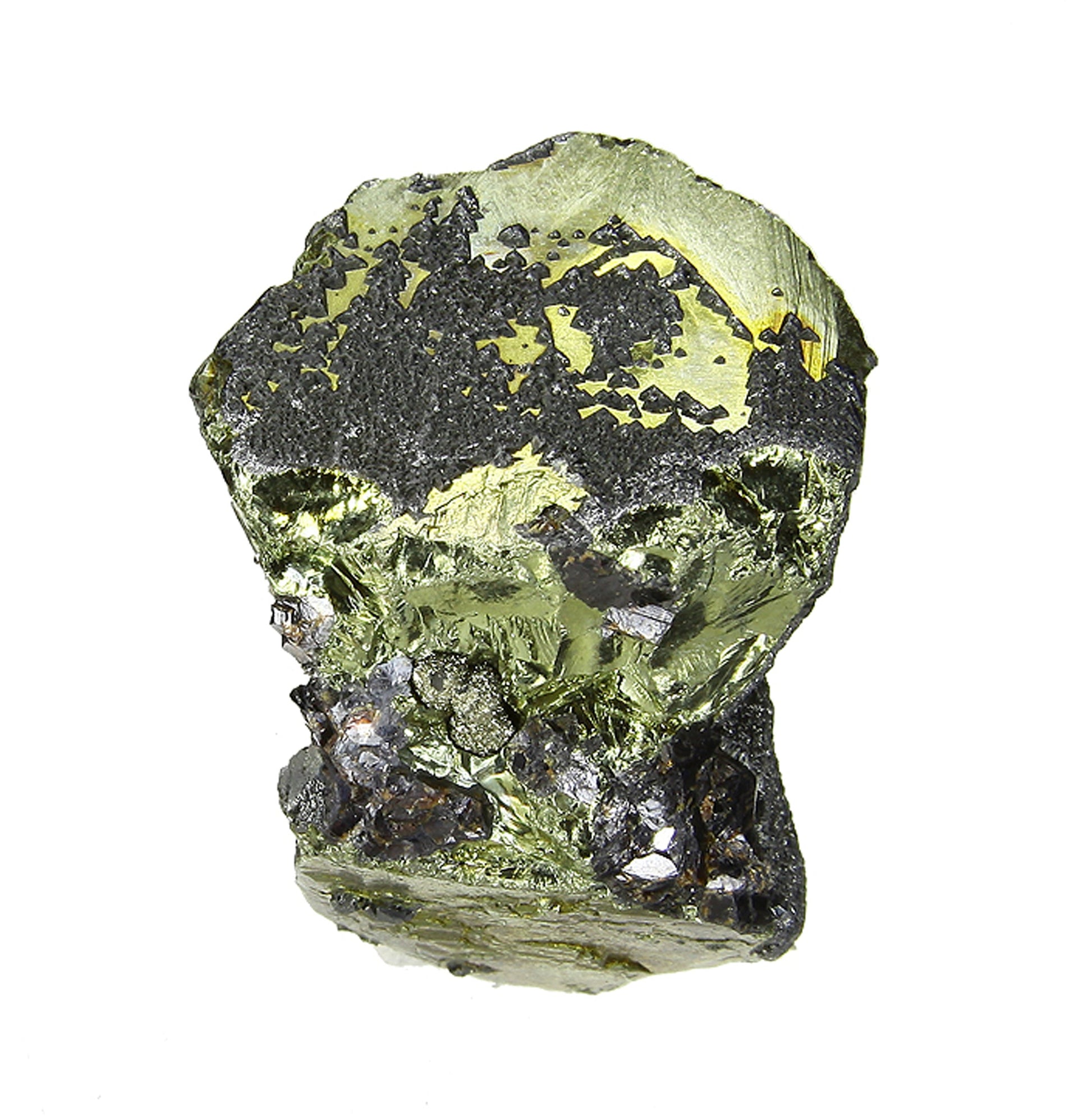 This specimen features good sized, sharp, metallic, brassy-gold colored twinned crystals of Chalcopyrite coated by micro epitaxial cubic Galena(?), as there is already associated Sphalerite on the reverse side that looks quite different from what’s on the front of the piece. Possibly the coating could be one of the several Bismuth sulfides reported from this mine, but without testing, it’s difficult to know for certain. The specimen is nearly 100% complete, with just a minor contact on the back – both ends are crystallized! - and still displays well from the front. These specimens are almost impossible to obtain these days and are regarded among Colorado collectors as some of the best from the state. Well worth picking up for anybody interested in these beauties.