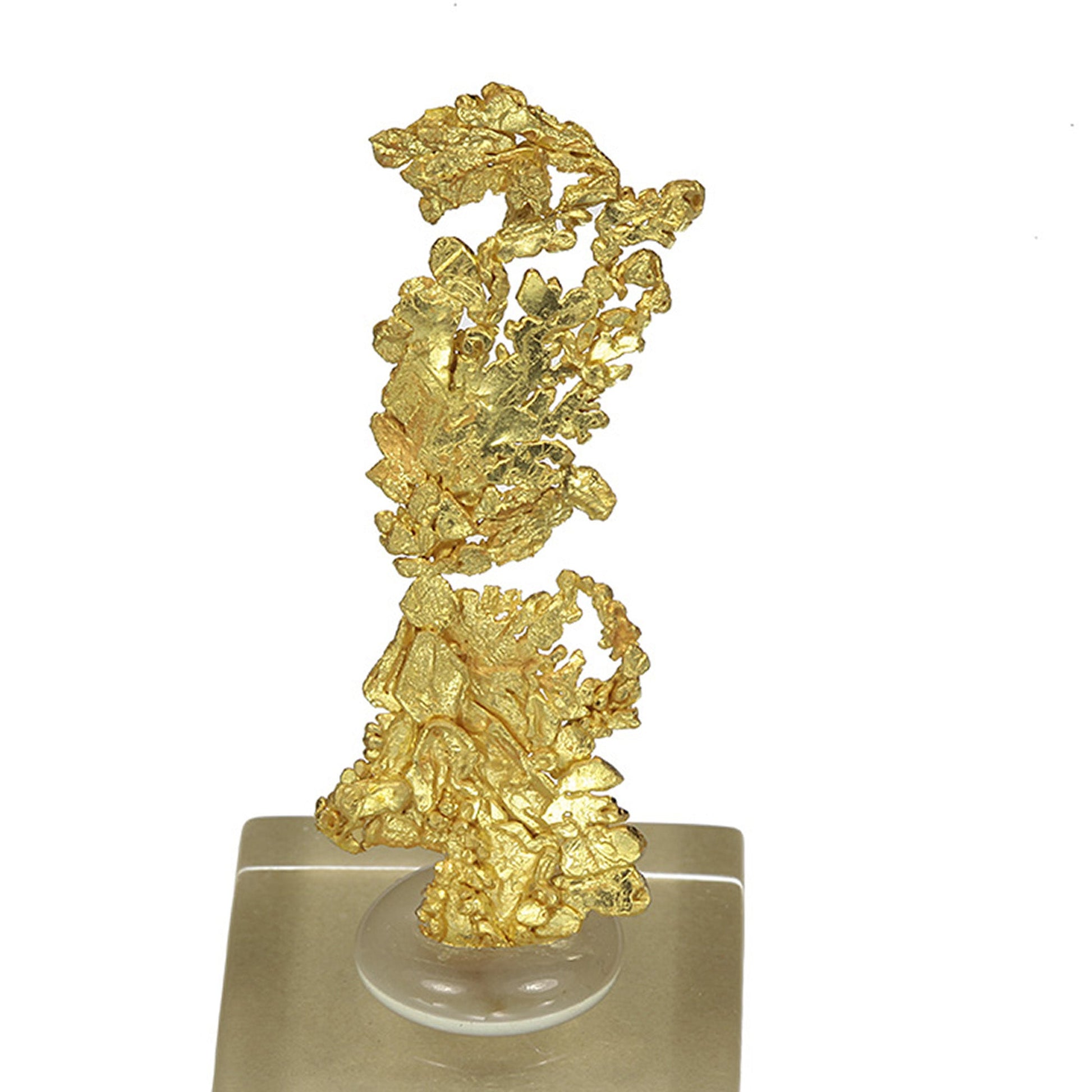What a gorgeous combination of arborescent and crystallized Gold in this aesthetic miniature display specimen. The piece is crystallized on every square millimeter with a stunning “feather”-like array of sharp, distinct, “spear tip”-esque flattened octahedra and compressed dodecahedra of native Gold with good luster. It’s more of a two-dimensional piece but leaves nothing to be desired in the way of crystallization, as both sides are loaded with fine quality and eye-catchingly distinctive crystals that can be appreciated both with a loupe and the naked eye.