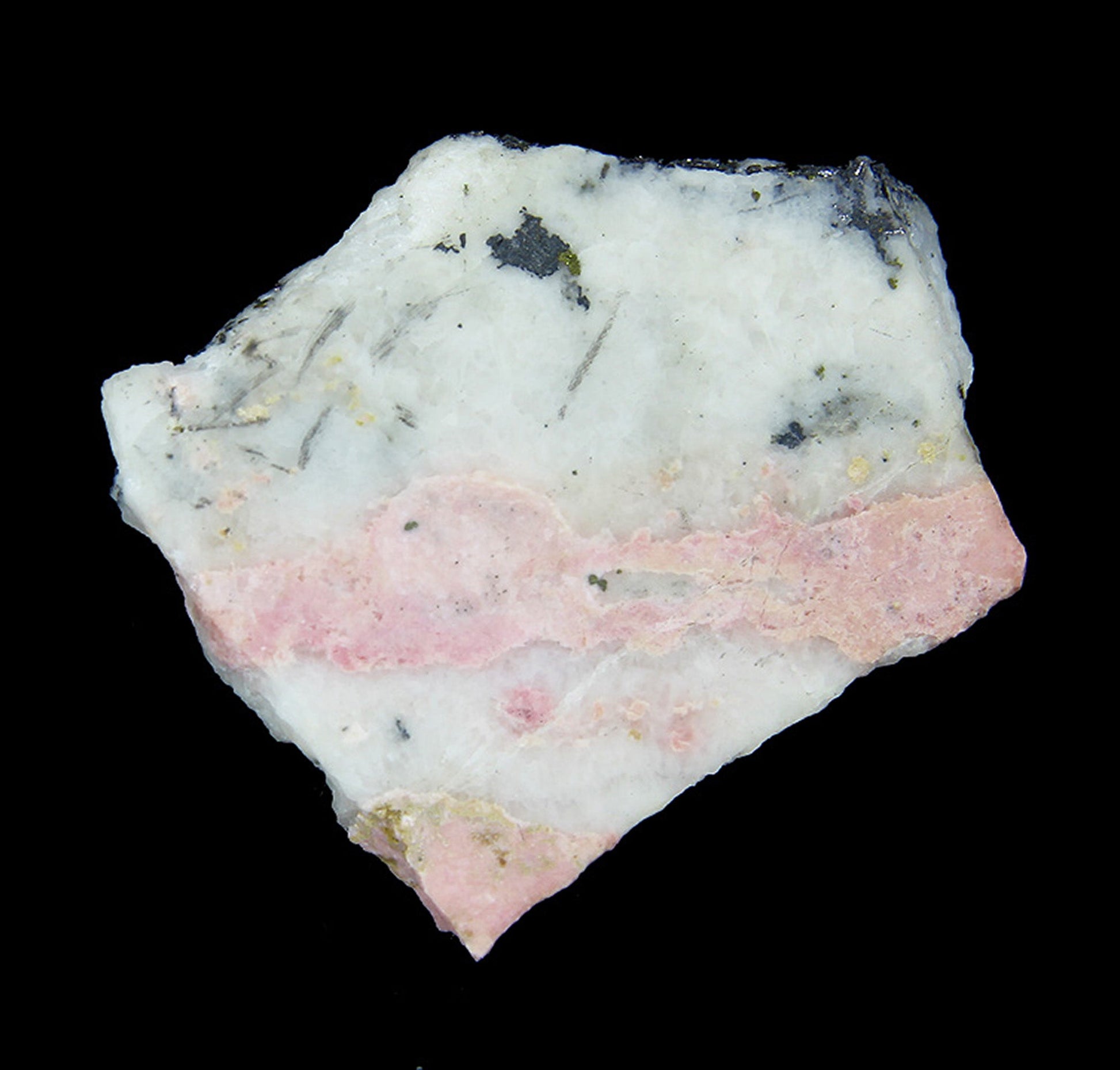 This slabbed specimen is one of the few of its kind that I have seen from this mine. It features patches of "Cloud Gold" which is a speckling of small "dust"-like areas of Gold which are intergrown with white Quartz and associated with Galena, Sphalerite and Chalcopyrite, but the most INTERESTING aspect of this specimen is the fact that it features pink bands of the rare Manganese Silicate, Pyroxmangite! This association of Gold with Pyroxmangite is very rare, and possibly unique to the Sunnyside mine. This specimen was mined in 1966, and comes from the Colorado Gold collection of my father, Richard A. Kosnar.