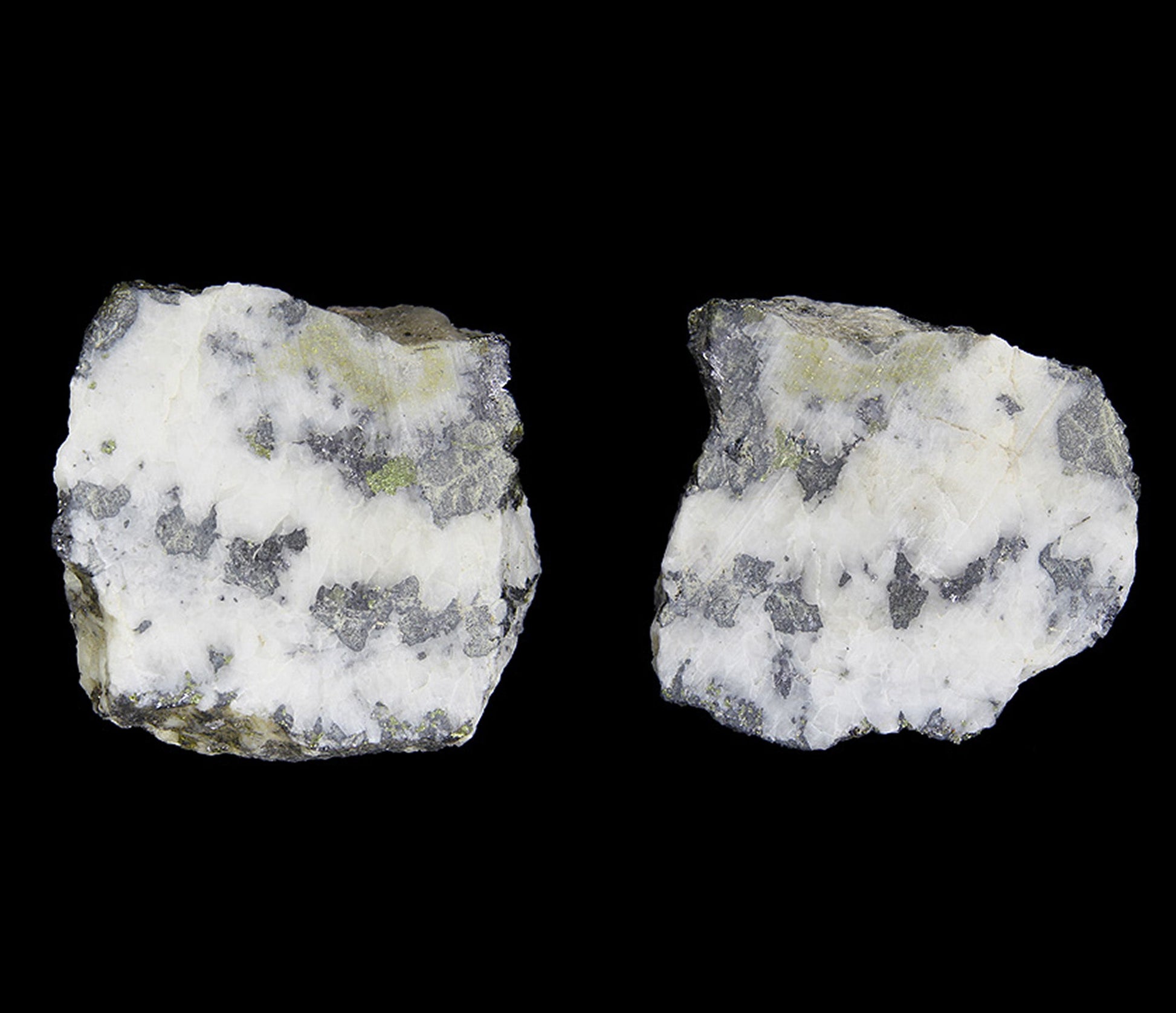 How often does one encounter such an interesting example of Gold from this world-famous locality? This piece was collected by Joe Mattivi in the 1980s. This matched set of sawn specimens features corresponding spots of bright metallic “Cloud Gold” that are mixed in deep green to black Sphalerite and white Quartz matrix. They make for a cool pair of “bookends”.