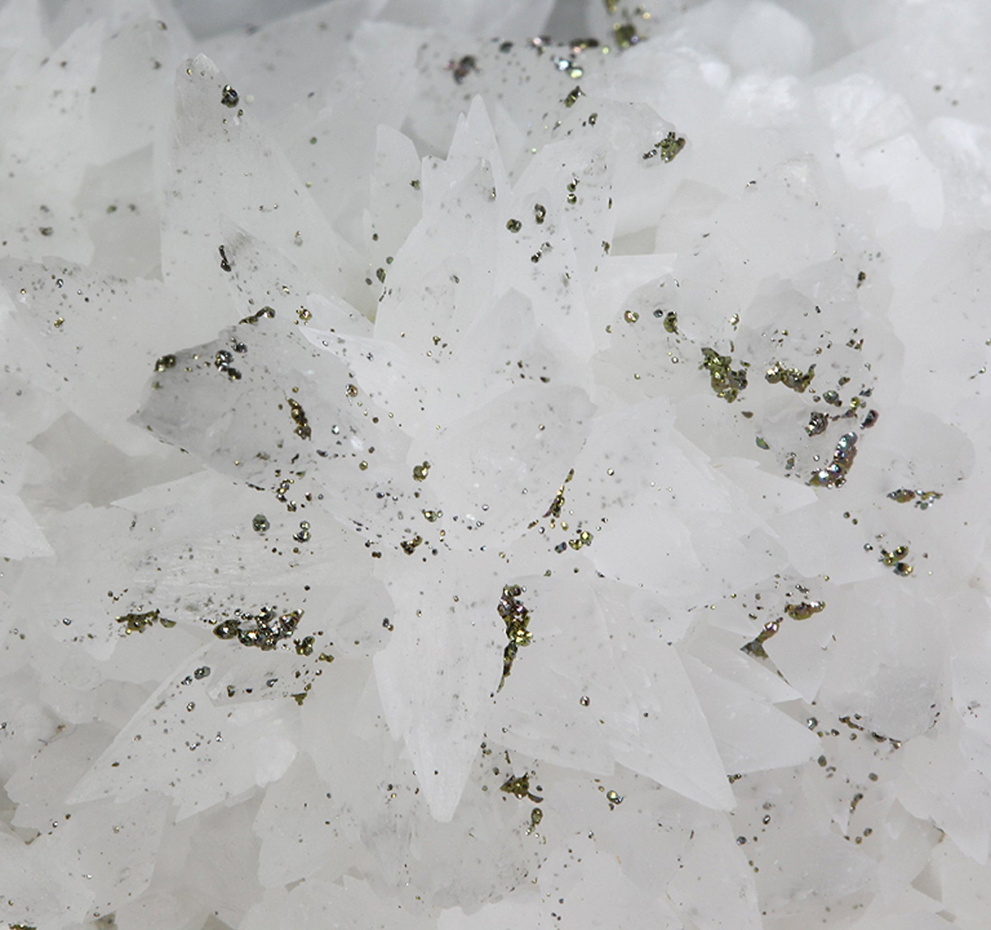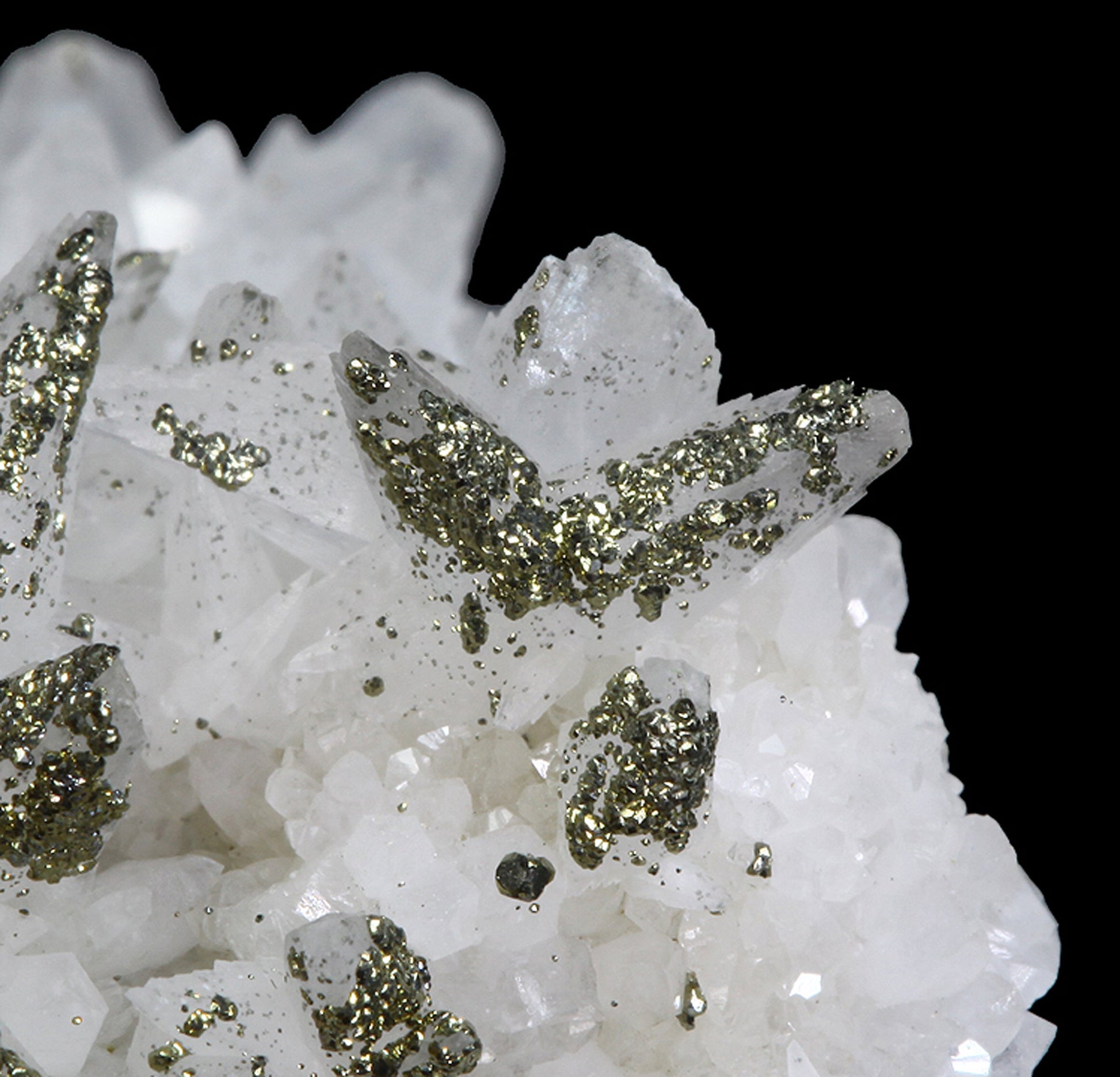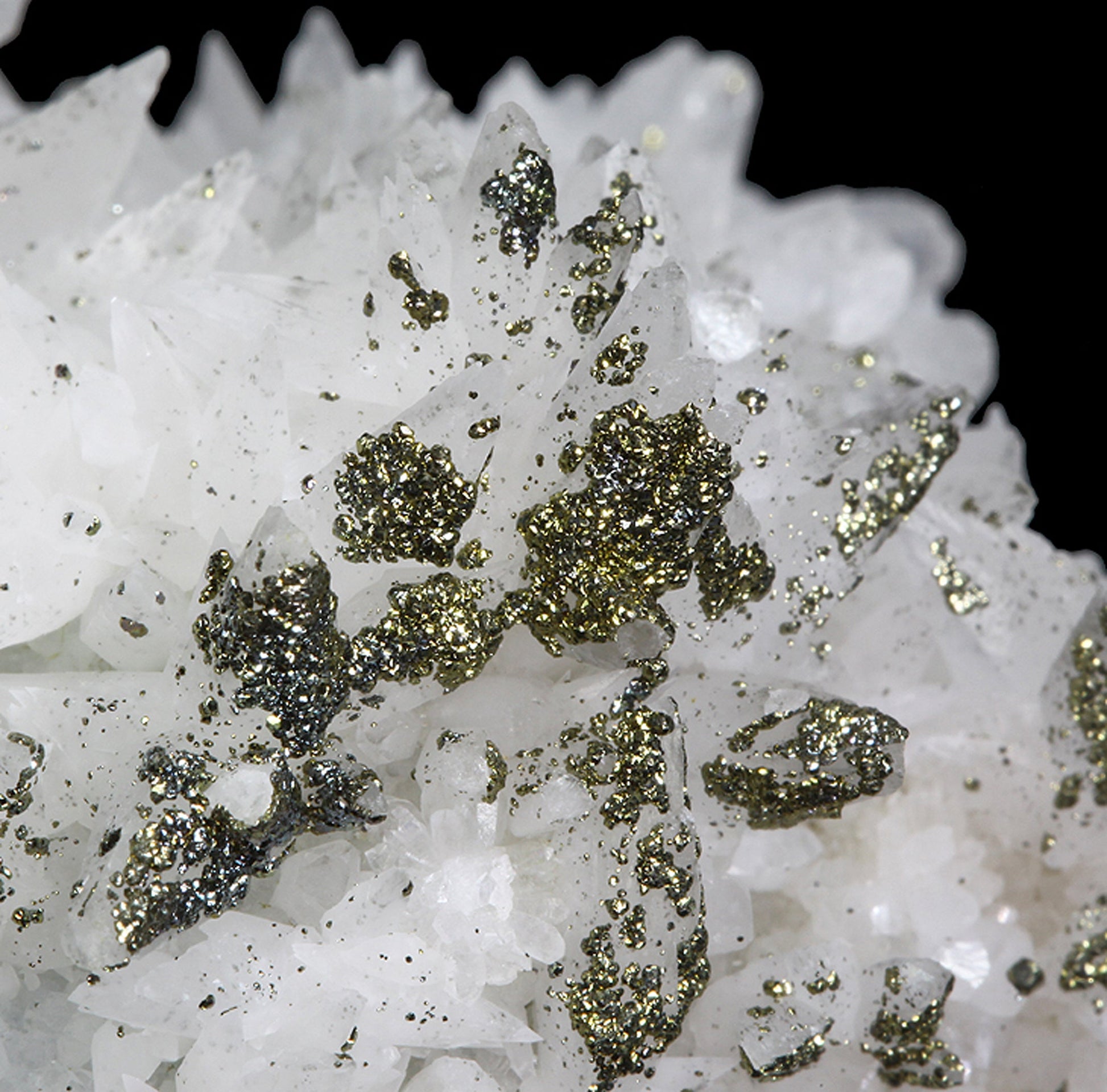 Unlike some of the other major mines of the San Juan Triangle (e.g., Camp Bird or Idarado), Calcite is not terribly common from the Sunnyside Mine. This piece features dozens of sharp, translucent, white scalenohedra of Calcite which are gently “dusted” with sparkling golden Pyrite in select areas. Great condition overall, and certainly hard to find from this particular locality.