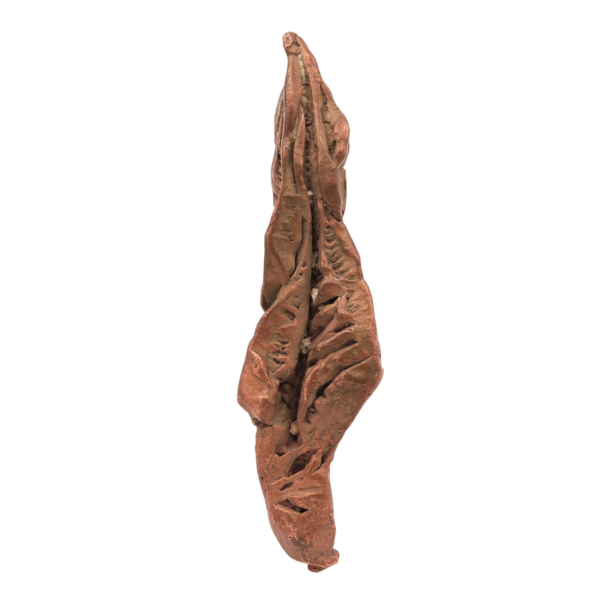A truly impressive and superb quality, large "Spinel"-twinned crystals of Native Copper from the recent mining at this large Copper pit locality in Australia. The specimen almost reminds me of an arrow due to its shape, but it also has somewhat of an organic quality to it as well. The piece displays a fantastic blending of the large central twin which is flanged on several sides by small Copper crystallization, along with the gorgeous skeletal or "hoppered" faces that can be seen all over. The piece is a complete, undamaged "floater" with excellent form, sharpness and crystallization. It is reminiscent of similar specimens from the Chino Mine in New Mexico, but these Australian specimens are heftier and more robust! This piece displays beautifully from either side to the point where I can't decide which side is actually the "front" because it looks so good all over.