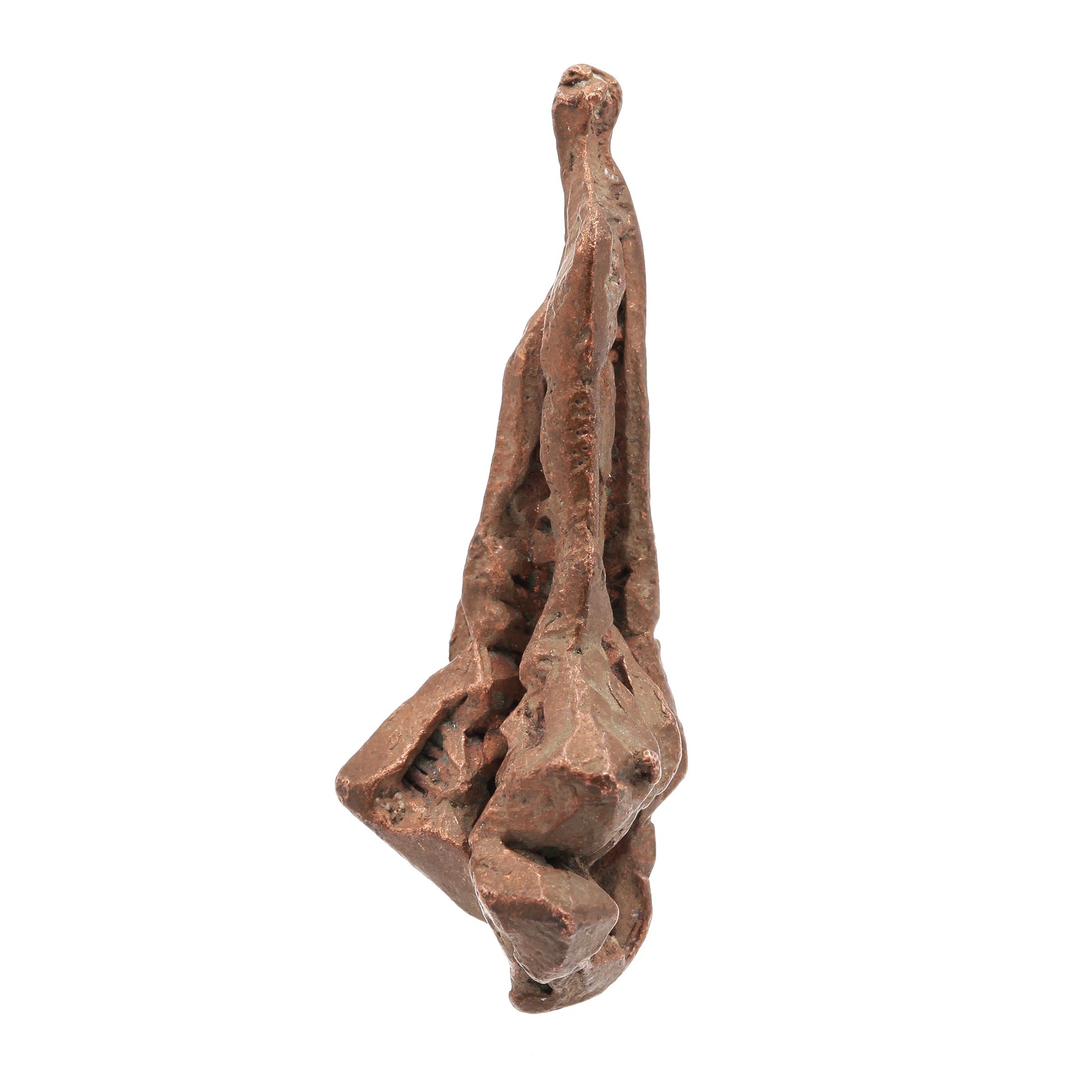 A fantastic specimen of Native Copper from the Rocklands Mine in Australia. The piece is robust, showy, sculptural and reminds me of a big, spiked club or mace with it protruding pointed octahedral faces which are flaring out of a beautiful elongated "Spinel"-twin at the base. The combination of the incredibly well-formed faces against the skeletal / "hoppered" formations of the twin itself is striking and very well-pronounced in this specimen. You rarely see such well-formed crystal faces on this material, and this piece is certainly one of the best we've handled in that respect. No damage anywhere and the piece is completely crystallized on all sides, making it a "floater". A superb example of these supremely fine quality Coppers.