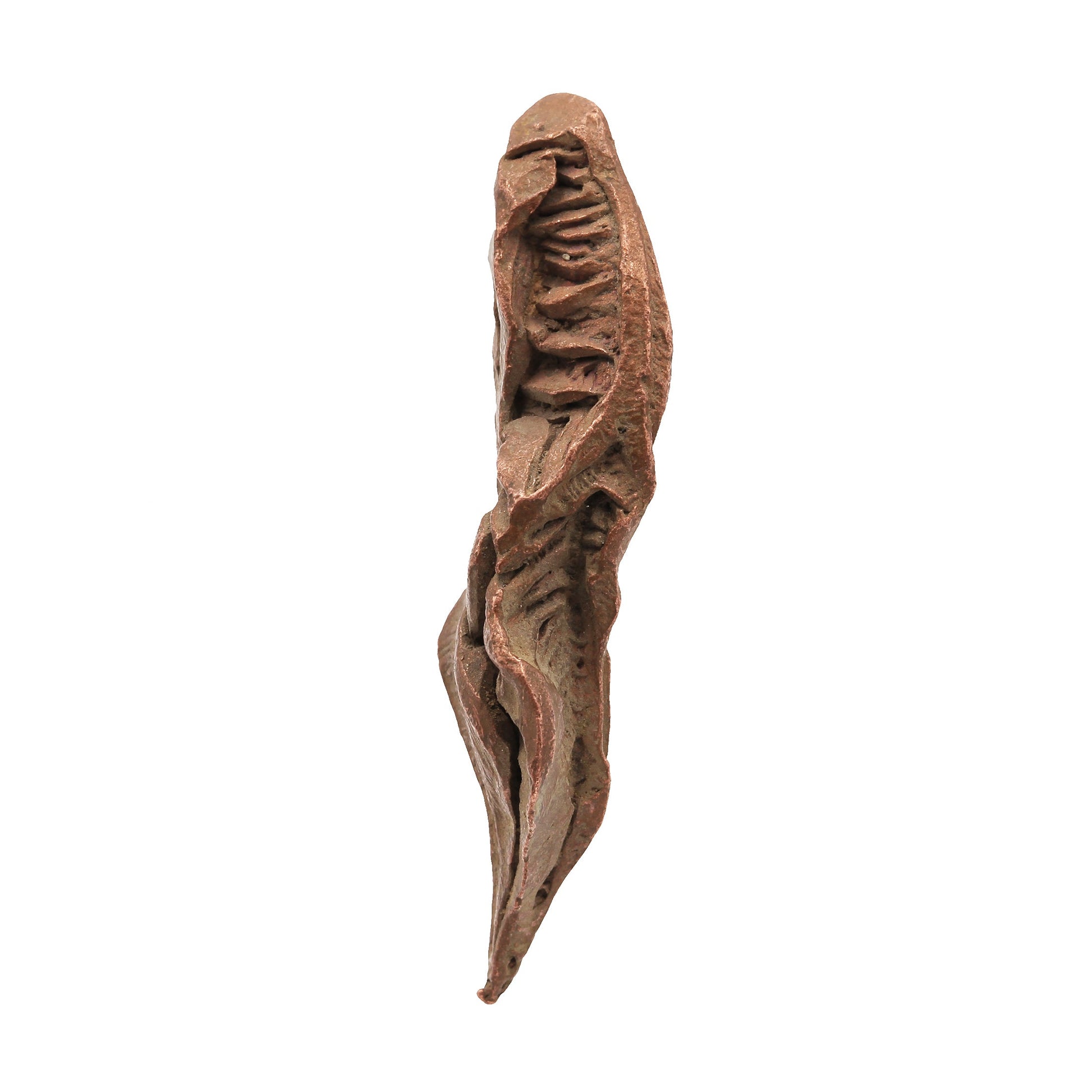 Here we have a beautiful, elongated "Spinel"-twinned Copper specimen from the 2019 discovery at the Rocklands Mine in Australia. The piece is complete on all sides with no damage anywhere, making it a "floater" with no point of attachment. The dichotomy between the elegantly well-formed octahedral crystals faces and the deep, repeating skeletal or "hoppered" lines is dramatic and eye-catching. The piece reminds me of a DNA helix with its twisting, narrow form combined with the ladder like "rungs" that which can be seen from multiple sides. One of my favorites for its elegance and beauty.