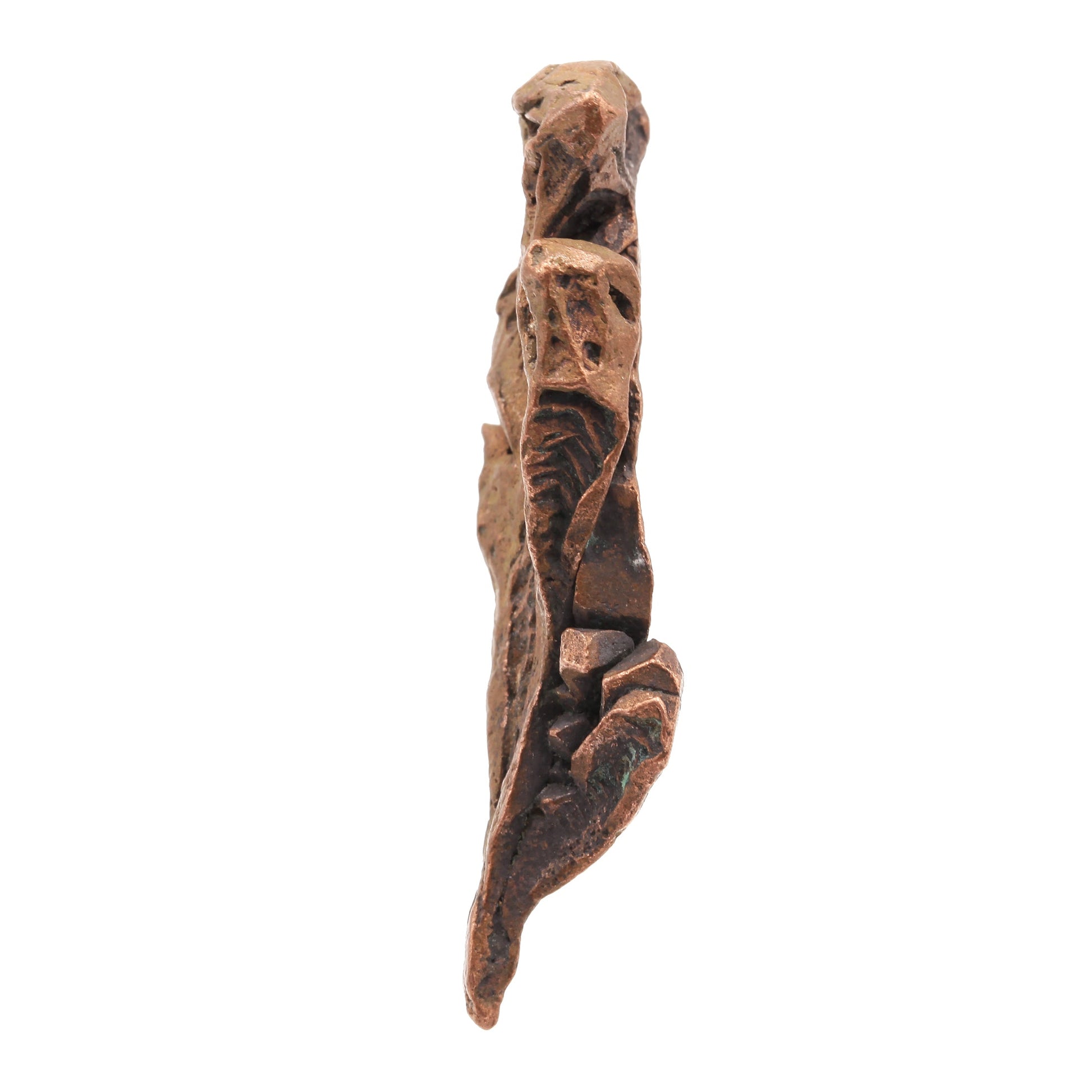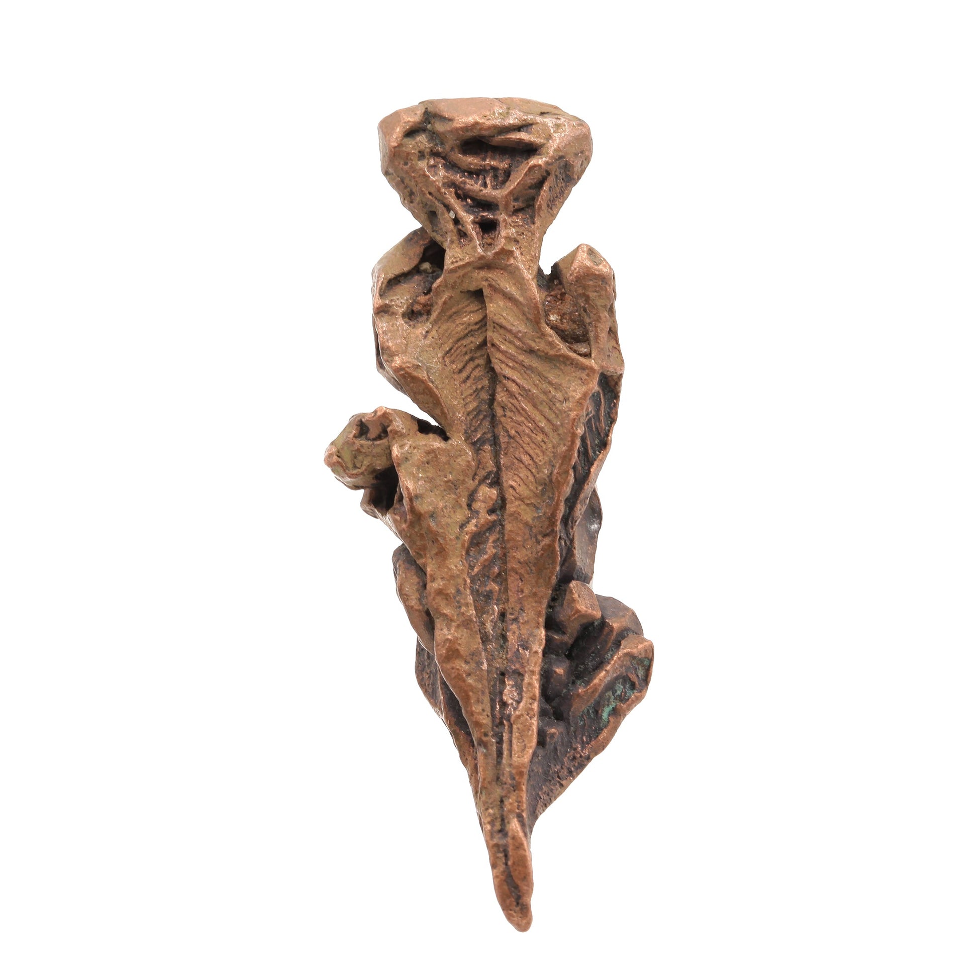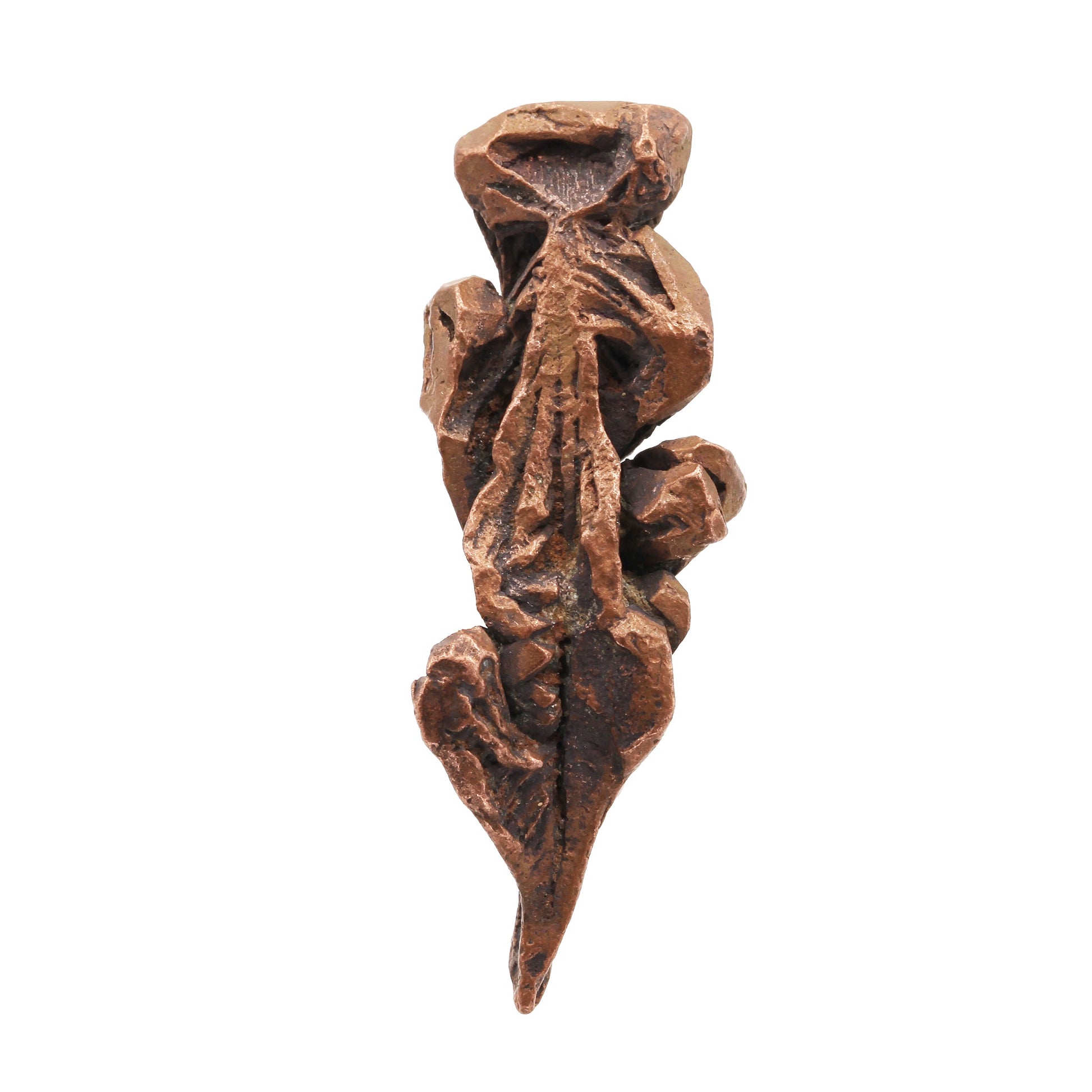 This beautiful specimen of Native Copper features a pleasing combination of defined "Spinel"-twins and well-formed crystals intergrown to create a display quality miniature. The piece is highlighted at the top by a wonderful dodecahedral crystal of Copper with both smooth well-formed positive faces and skeletal or "hoppered" negative faces sitting atop an elongated group of "Spinel"-twins which branch out along the length of the specimen. Each of the smaller "arms" of these twins is terminated by fine quality, well-formed dodecahedral crystals of Copper. The blending of both the euhedral crystals with their defined geometric form against the free-flowing, almost organic appearance of the twins, make this one of the most attractive and desirable pieces that we purchased. The piece is completely pristine on all sides, and this is what is referred to as a "floater" with no point of attachment anywhere. It's rare to find both sharp, well-formed crystals along with the gorgeous "Spinel"-twins on the same specimen like this from this locality.