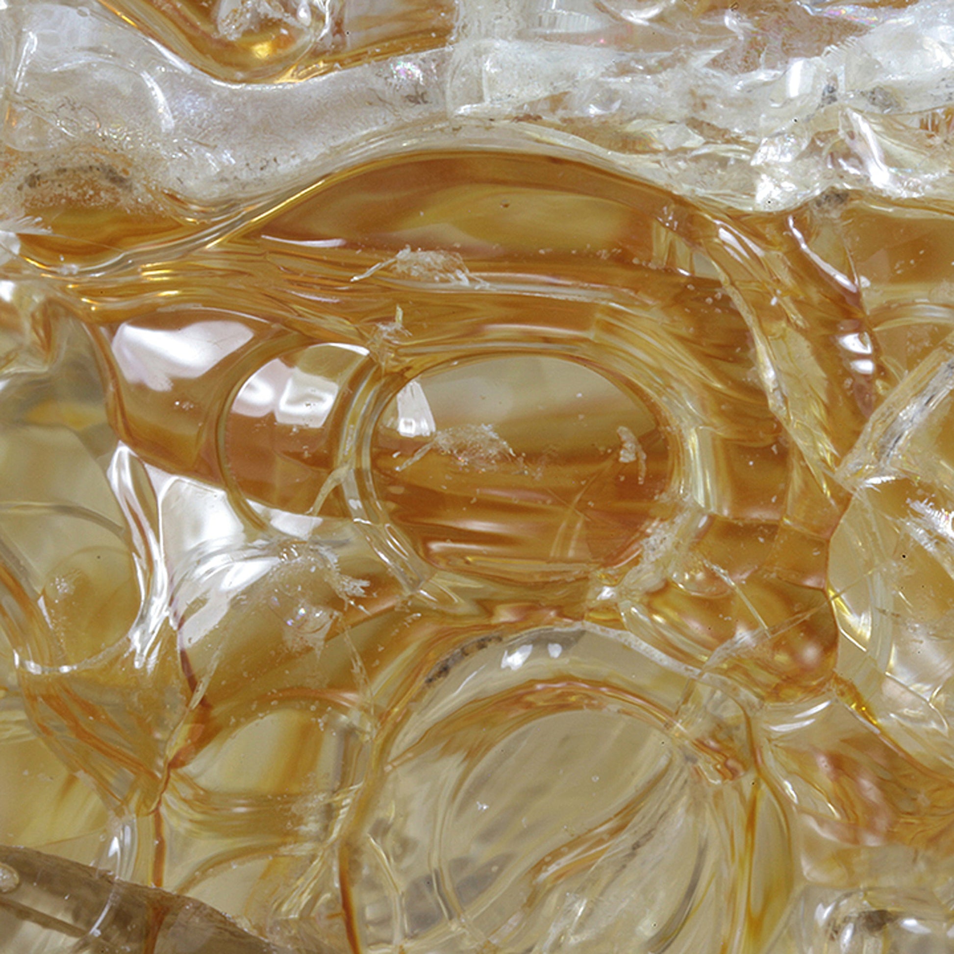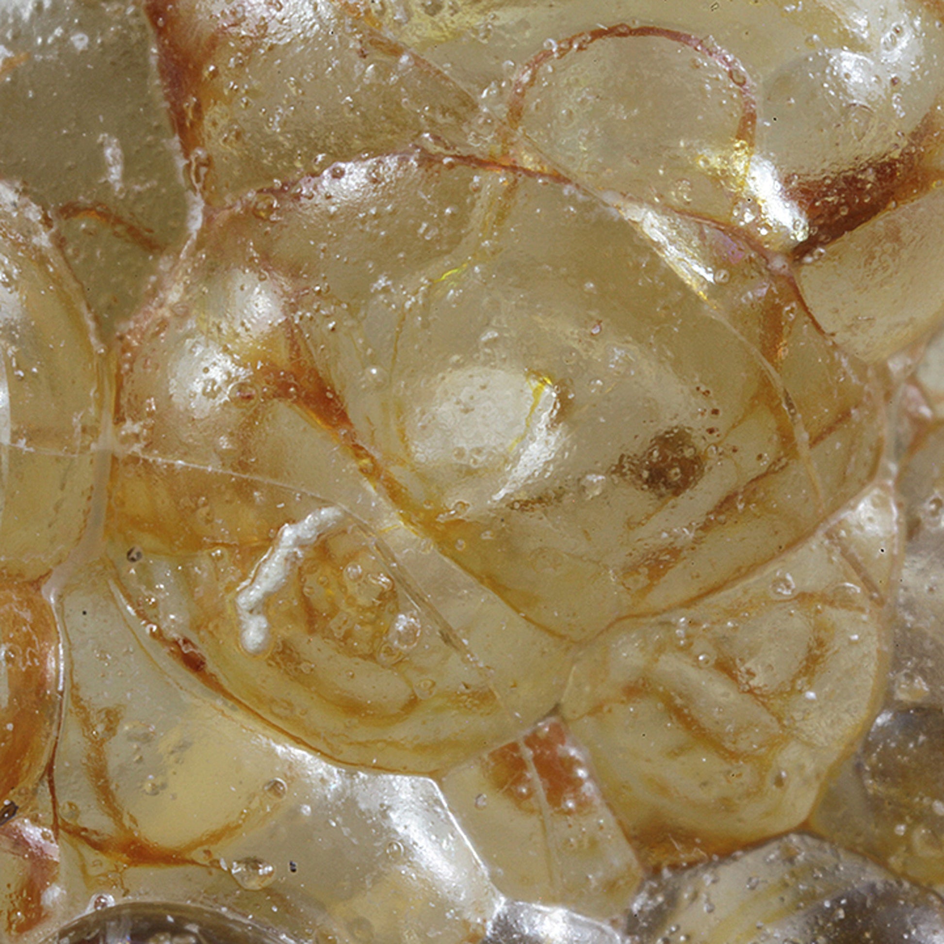 Finally, for years this material was referred to as "Hyalite" Opal, but is now listed as a variety of Opal called Opal-AN. It is now defined specifically as an amorphous (often colorless) form of Opal that is found in spherical aggregates, which are often intergrown or stacked with a "bead"-like appearance. For reference, mindat.org states that: "The "A" in the name stands for amorphous; the subscript "N" is to imply its structure is network-like, similar to silica glass; however, it still contains about 3-8% water".