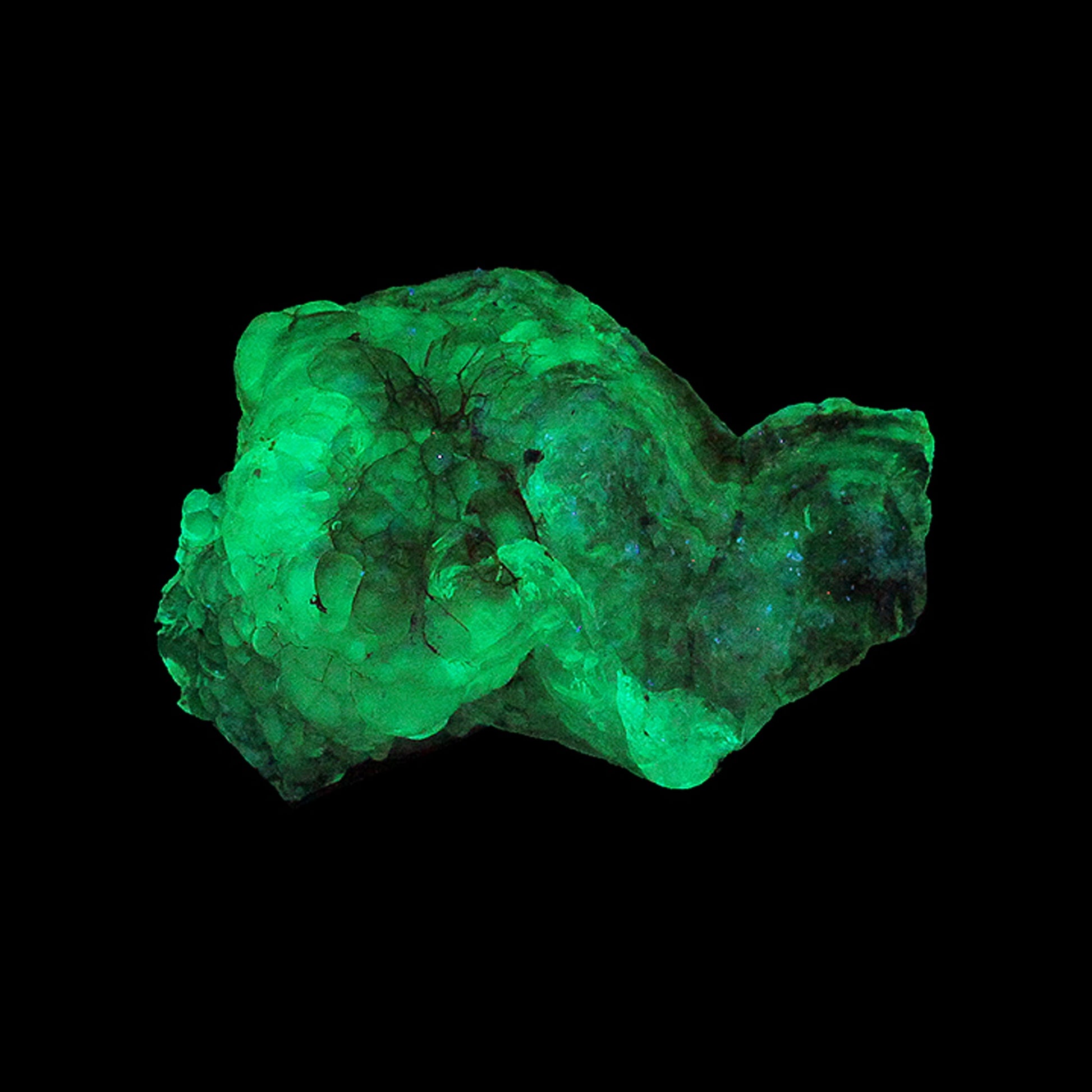 ** PLEASE NOTE: We use professional grade UV lights to photograph all of our pieces, which are pure UV and more powerful than virtually any UV lights that can be purchased at retail stores. Lights purchased outside of scientific suppliers often have mixed wave bulbs with a much lower wattage, and not all minerals (including Opal) fluoresce under different UV waves. For example, these particular Hyalite Opals show strong green fluorescence under short wave UV but almost no fluorescence under long wave. Therefore, they do not fluoresce well under mixed wave lights.