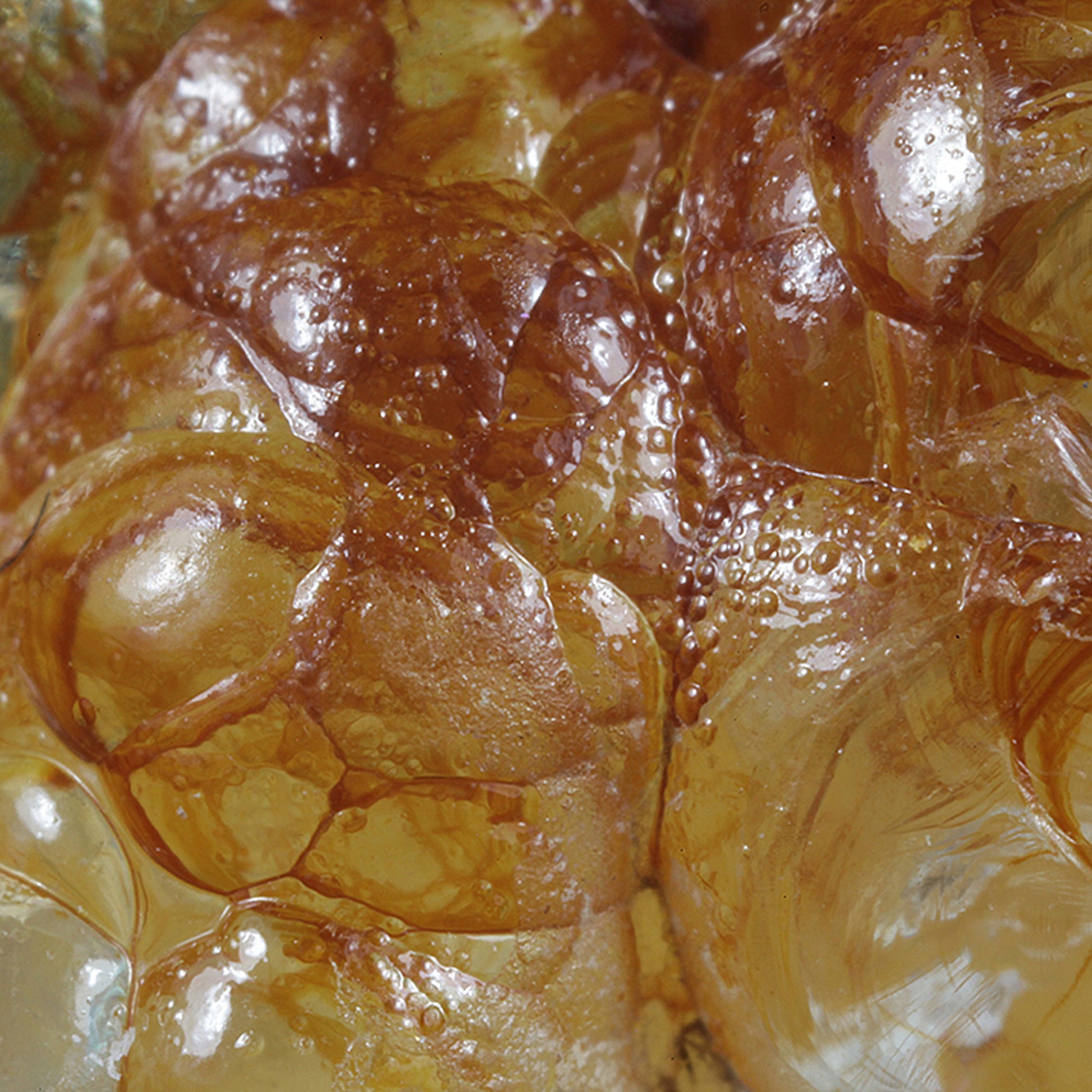Finally, for years this material was referred to as "Hyalite" Opal, but is now listed as a variety of Opal called Opal-AN. It is now defined specifically as an amorphous (often colorless) form of Opal that is found in spherical aggregates, which are often intergrown or stacked with a "bead"-like appearance. For reference, mindat.org states that: "The "A" in the name stands for amorphous; the subscript "N" is to imply its structure is network-like, similar to silica glass; however, it still contains about 3-8% water".