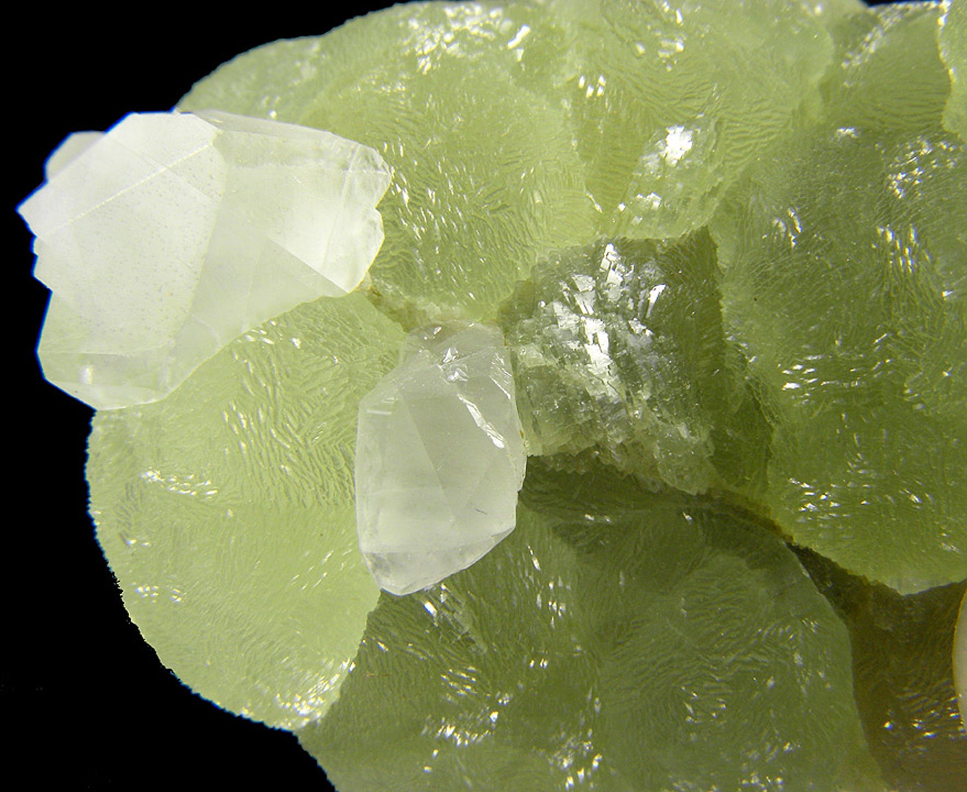 During the latter half of 2010, one of the most momentous Prehnite discoveries was made at the Prospect Park Quarry. Some of the finest quality Prehnite casts were collected in a series of pockets in the middle of the quarry in a dome-shaped structure measuring approximately 40 x 40 x 40 feet (approximately 12 x 12 x 12 meters) that is locally referred to as a diapir. This discovery stands as one of the most impressive and important discoveries, not only in recent years, but perhaps in the history of the Prospect Park Quarry. Perhaps the most important aspect of the specimens is the fact that the Prehnites show DISTINCT crystallization that can easily be seen with the naked eye – a rare feature for this type of Prehnite as the crystals are often very small and nearly amorphous. Many of the most desirable qualities of great Prehnites from any New Jersey locality are seen in these wonderful specimens.