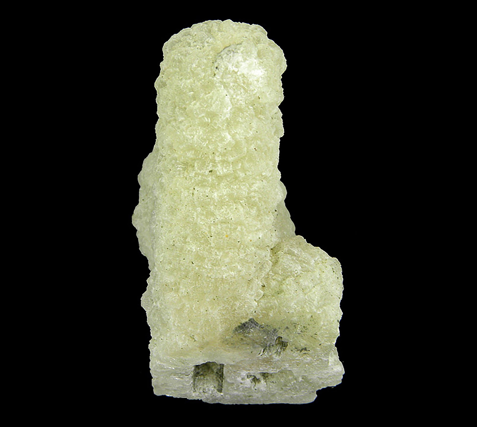 A pair of diverging finger-shaped casts of light yellow green Prehnite replacing Anhydrite makes for an attractive miniature sized display piece. The color is a light yellow-green, with muted luster created by a coating of a secondary clay mineral. Overall, the piece is essentially damage free and is an aesthetic representative specimen from this classic discovery.