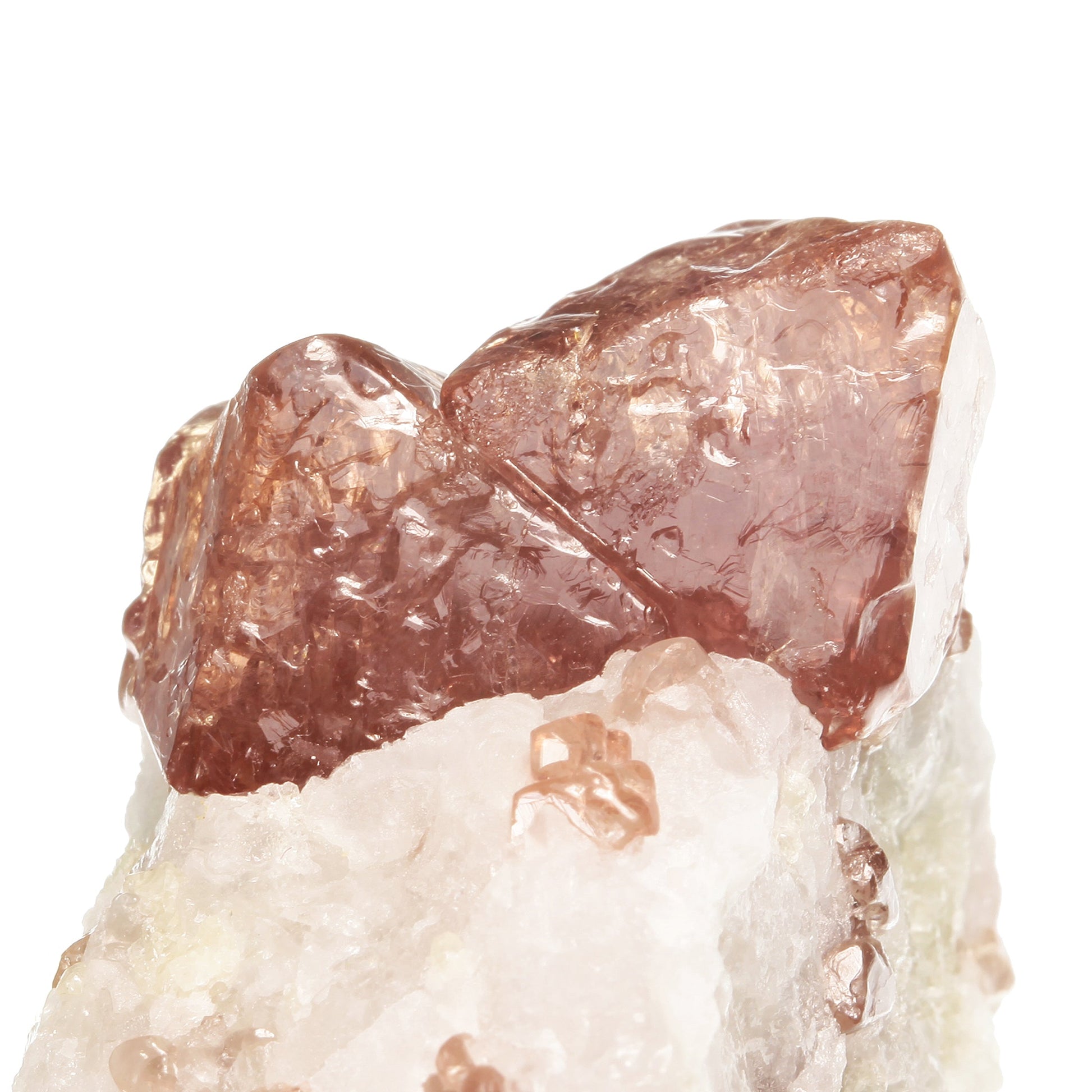 A trio of classic "Spinel-law twins" with sharp, lustrous faces, fine reddish-pink color and textbook form are beautifully positioned on white marble matrix to create this attractive miniature display specimen. All of the twins are in excellent condition with no major damage that I can see with the naked eye. With moderate backlighting, you can really see the color and gemminess come through! It's rare enough to find THREE twins on matrix like this, but what really makes the piece special is the fact that NONE of the crystals are repaired! The piece is 100% as it was found in nature, with no repairs, restorations or alterations whatsoever. If you collect gem minerals or colorful display specimens, think about how many (or most likely how few) UN-repaired matrix Spinel specimens you have in your collection.