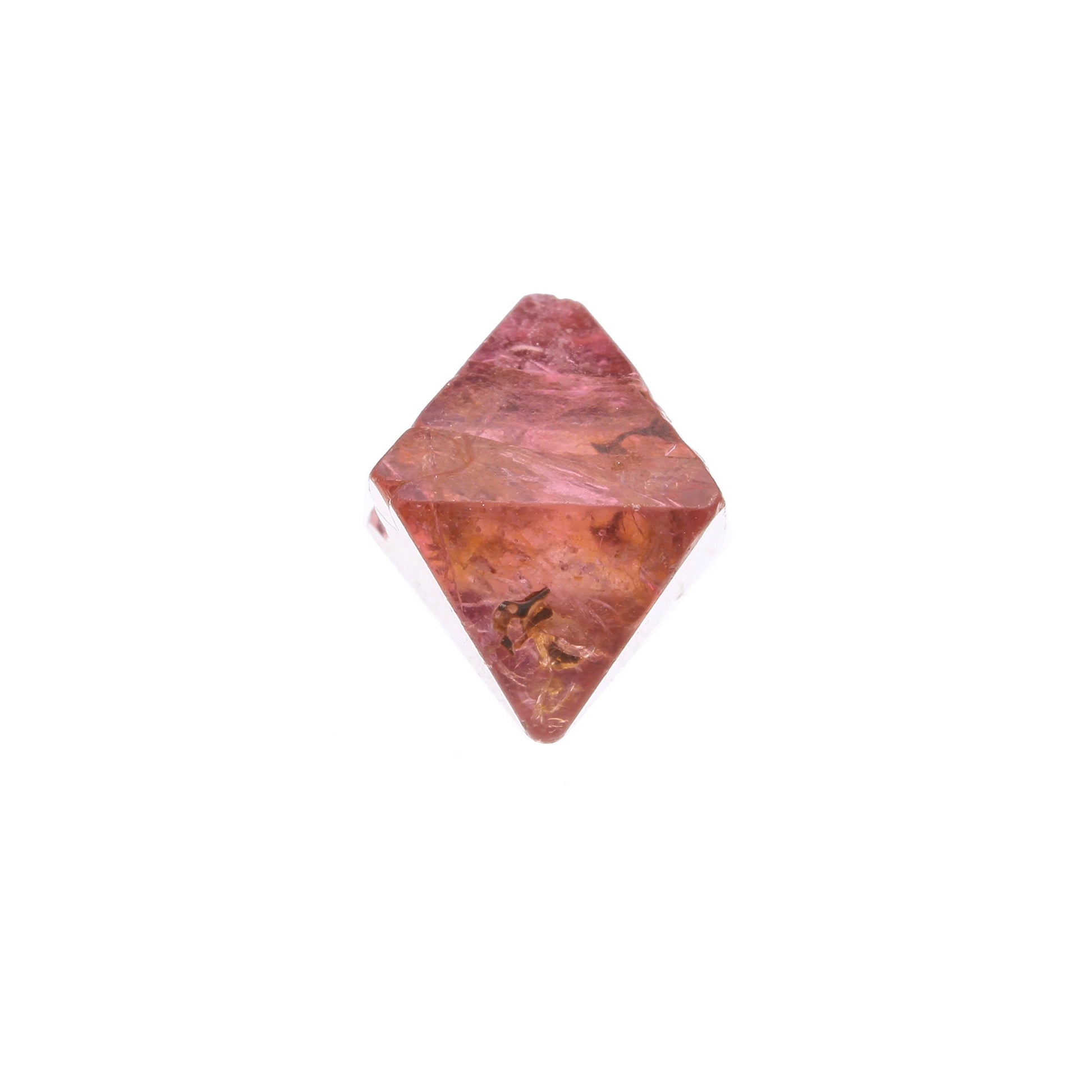A notably sharp, very well-formed, lustrous, single floater octahedron of Spinel with a gorgeous reddish-pink interior. The crystal is rather gemmy (better than the photos might indicate), but what really sets it apart is that it contains several wispy inclusions with varying orange to pink hues that create eye-catching color combinations when the piece is backlit. The fact that the crystal is rather gemmy is significant since it measures over 1 cm, and the faces are very smooth with a glistening luster on the surface. A small indentation can be seen on one side, which is not damage but rather an interrupted growth where the crystal was pushed up against the host rock marble in which it formed. This crystal displays a fiery glowing red fluorescence when exposed to UV light.
