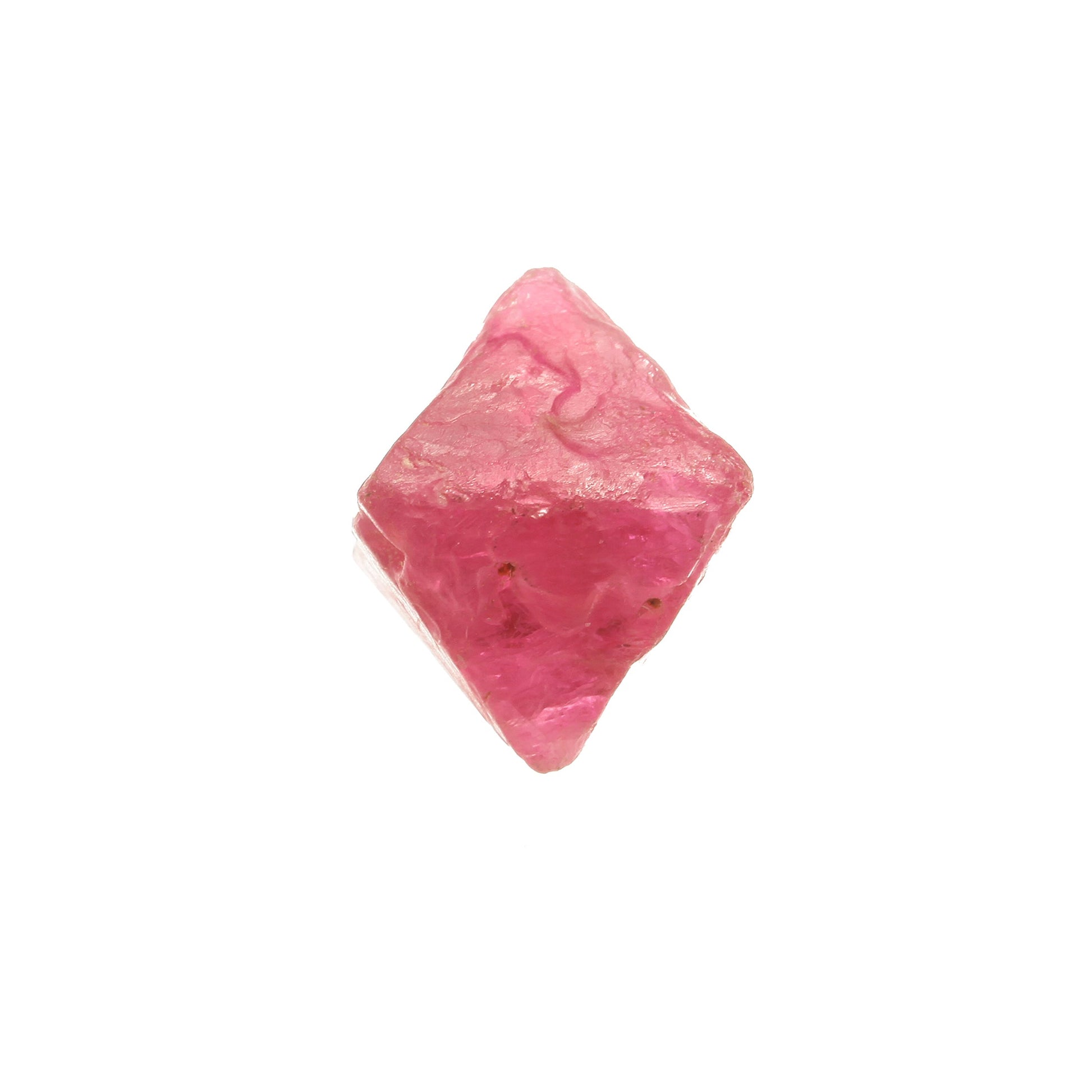 This crystal has one of the strongest electric pink hues I've seen in a Spinel from Mogok. It's not the gemmiest crystal in the world, but that actually helps to intensify the color. The piece is complete all around with no actual damage, but it does have some small areas of interrupted growth where it was inhibited by the marble host rock in which it formed. Very attractive color, and it's even STRONGER when the crystal is viewed under UV light.