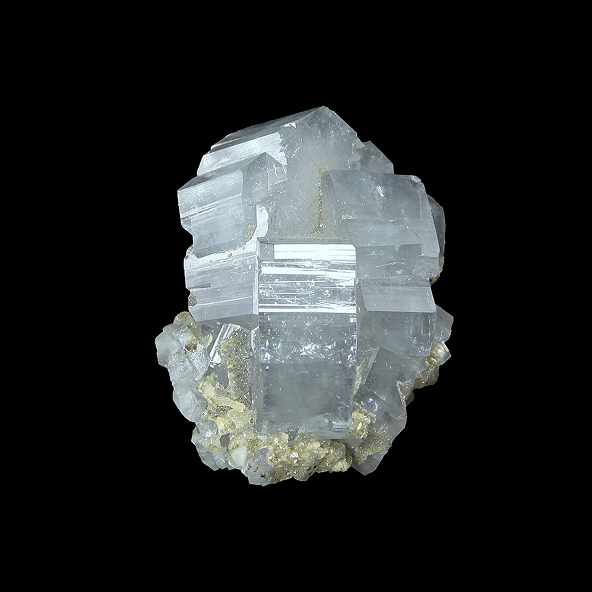 This piece is a wonderful miniature display specimen featuring superb quality, razor-sharp, highly lustrous, gemmy, thick silvery-blue color tabular hexagonal crystals measuring up to 3.2 cm across. The specimen has excellent three-dimensional form with great aesthetics. There are a few minor nicks, as is often the case with this material, but the outstanding luster, color and sharpness of the crystals outweighs any trivial dings. Not only is the piece showy on the display side, but it's crystallized underneath with minor associated golden Siderite rhombs. Oddly enough, this piece turns green in SUNLIGHT and shows its best blue color under fluorescent bulbs. This piece dates back nearly 50 years and was originally in my father's collection in the early 1970s and remained with us until we recently decided to sell it. There are not nearly as many Apatites from Panasqueira on the market as there were years ago, and pieces like this stand out as some of the finest examples of Flourapatite extant.