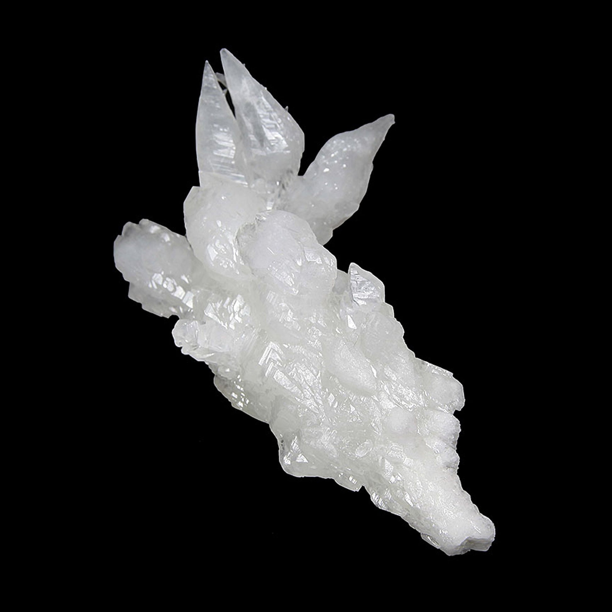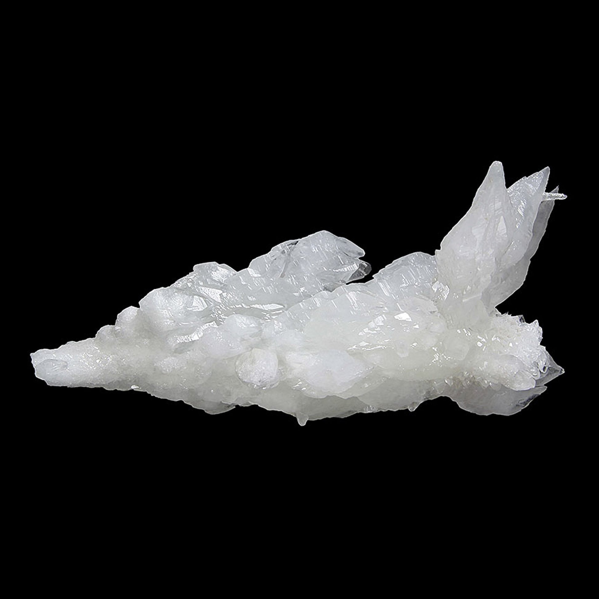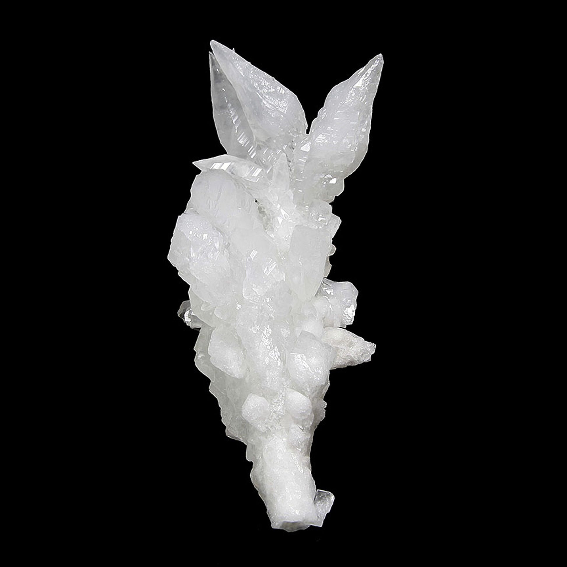 A gorgeous and aesthetic display specimen featuring notably lustrous, well-formed, complex modified scalenohedral crystals with a translucent quality ranging from white to colorless in areas. The specimen grew in a stalactitic formation, with a central "core" upon which the Calcites grew. This historic copper mining district is best known for its beautiful Azurite and Malachite specimens, but the Calcites stand out as some of the best from Arizona.