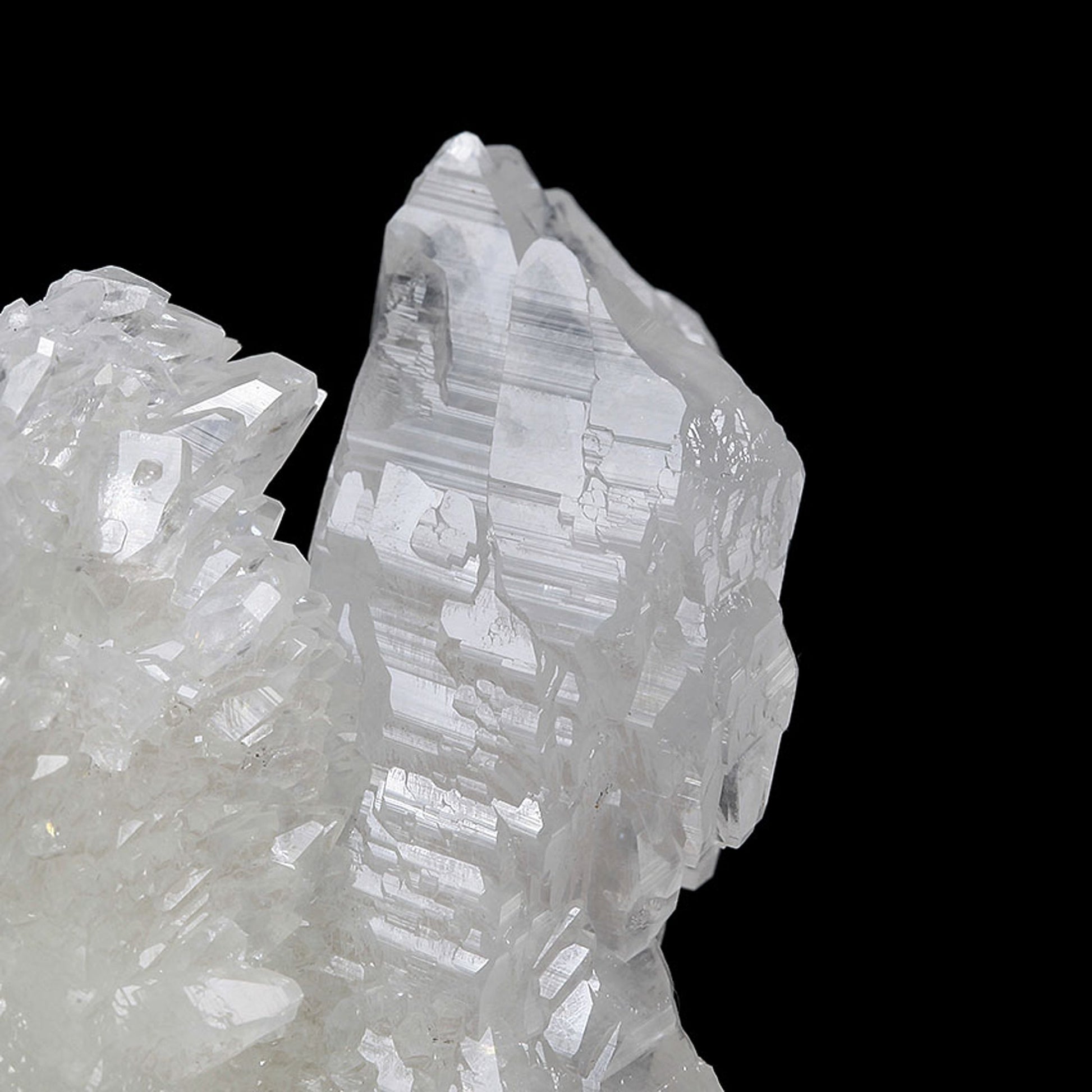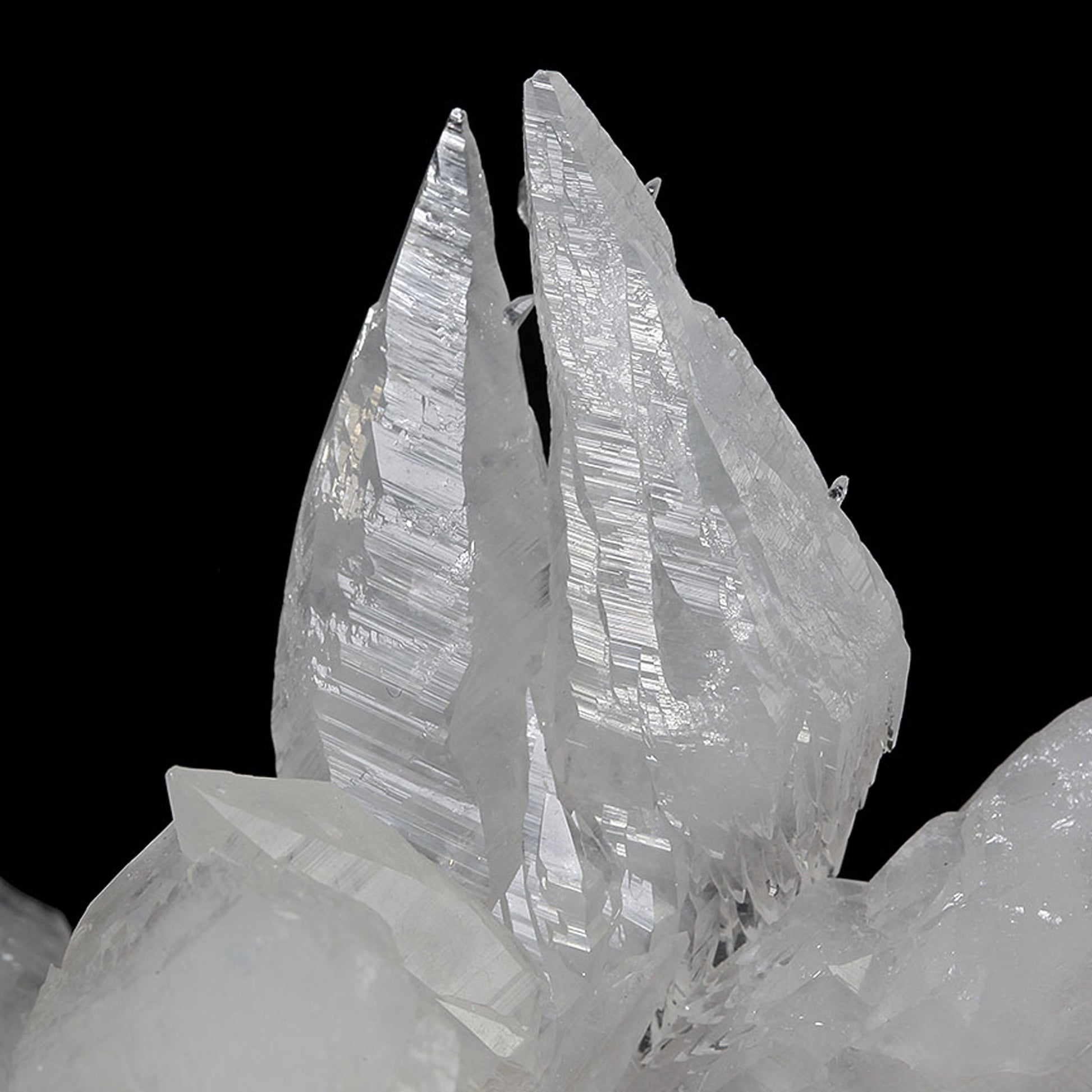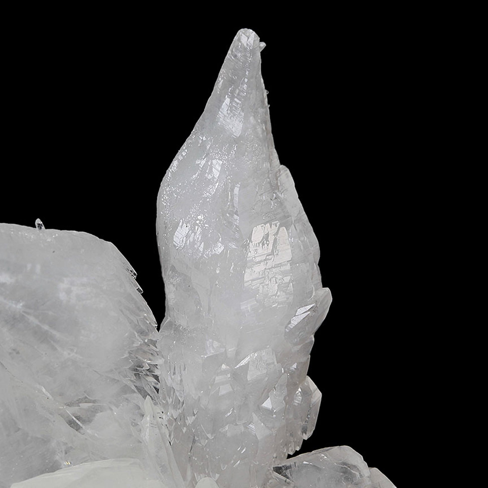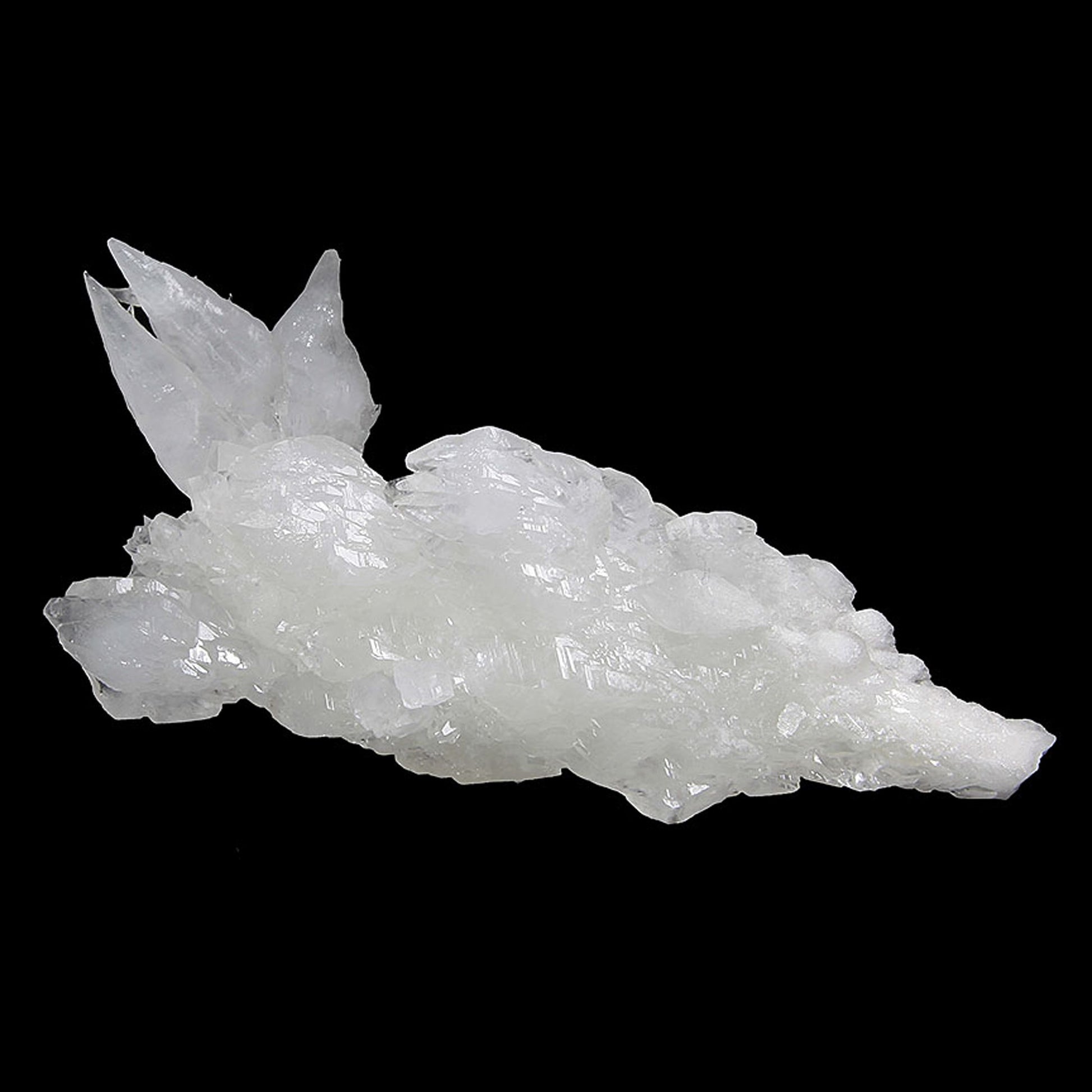 A gorgeous and aesthetic display specimen featuring notably lustrous, well-formed, complex modified scalenohedral crystals with a translucent quality ranging from white to colorless in areas. The specimen grew in a stalactitic formation, with a central "core" upon which the Calcites grew. This historic copper mining district is best known for its beautiful Azurite and Malachite specimens, but the Calcites stand out as some of the best from Arizona.