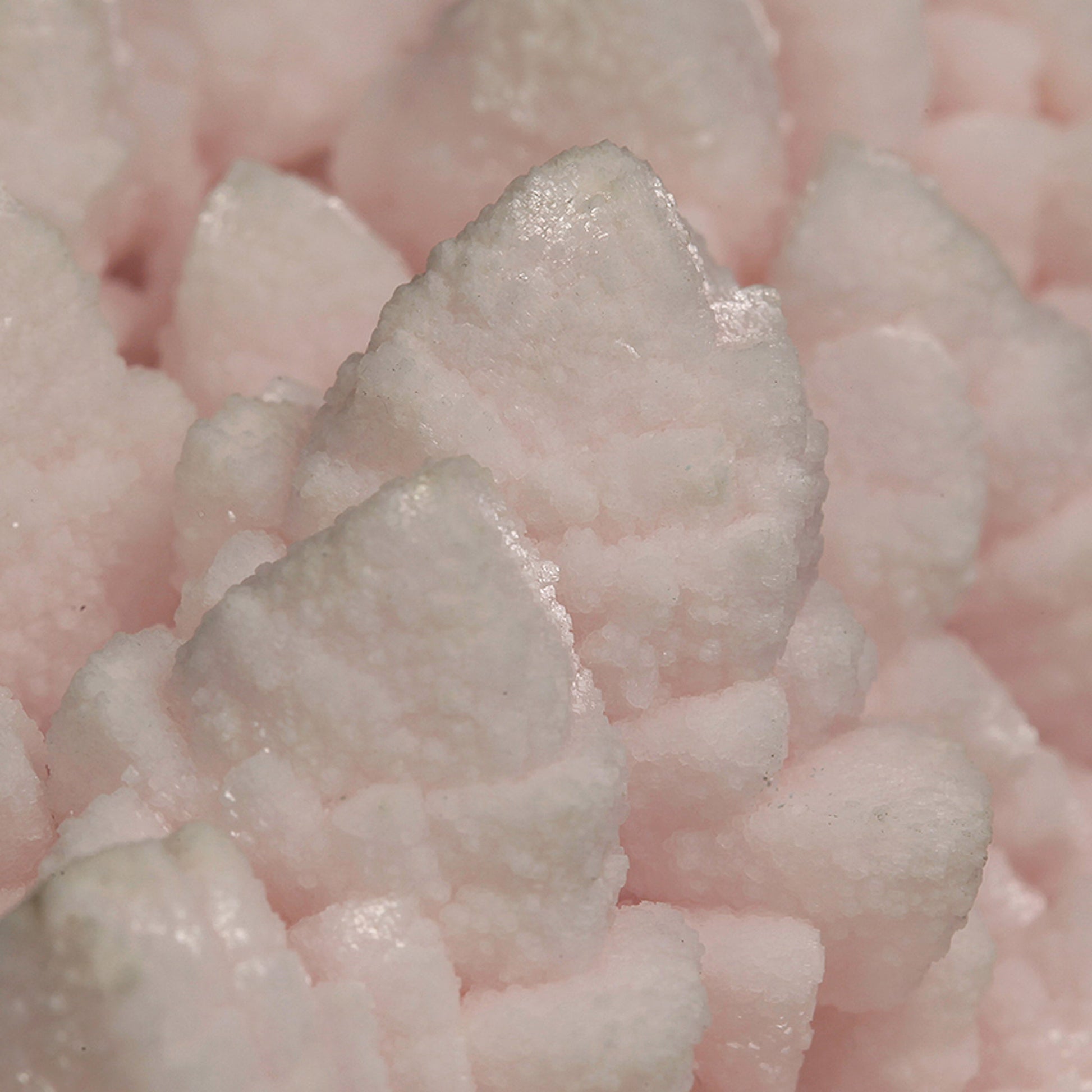 ATTENTION CALCITE collectors! This is arguably one of the finest examples of Mn-bearing Calcite that we've seen from this mine. A gorgeous Manganoan baby pink color group of beautifully stepped "dogtooth"-shaped crystals with a gentle but NOTABLE vitreous / satiny luster that resembles a forest of cotton candy trees. No real damage (outside of the periphery) to speak of and just beautiful in person.