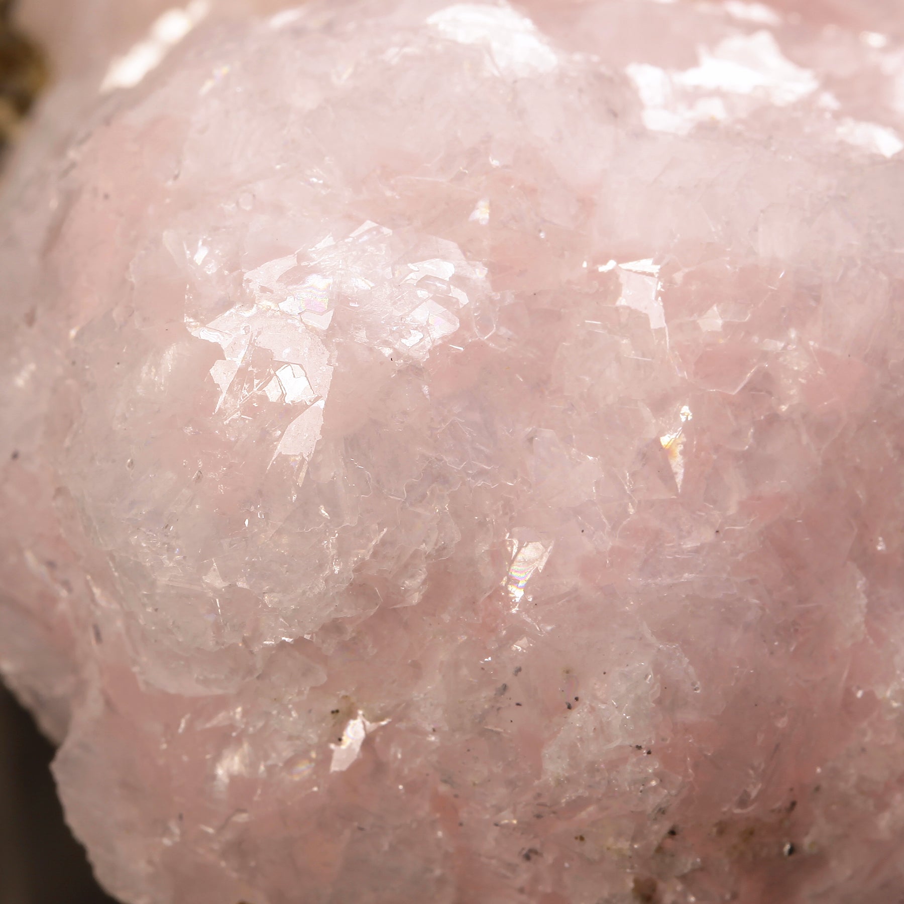 This three-dimensional, small cabinet sized specimen hosts gorgeous compound groups of flattened / stacked rhombohedral crystals of glowing bright pink manganese-bearing Calcite aesthetically sitting atop associated rhombic pinkish-grey Calcite on silvery bladed Lollingite matrix. The luster of the Calcite groups is what really grabs my attention as it is very shiny and still "pearlescent" / vitreous when the piece is rotated in the light. The largest compound group of Calcite crystals measures 7.3 cm, but individual crystals are hard to isolate as they are so tightly intergrown. There is very little damage to speak of, as the main group of Calcite is damage free on the display side. Beautiful fiery red-pink fluorescence under SW UV light.
