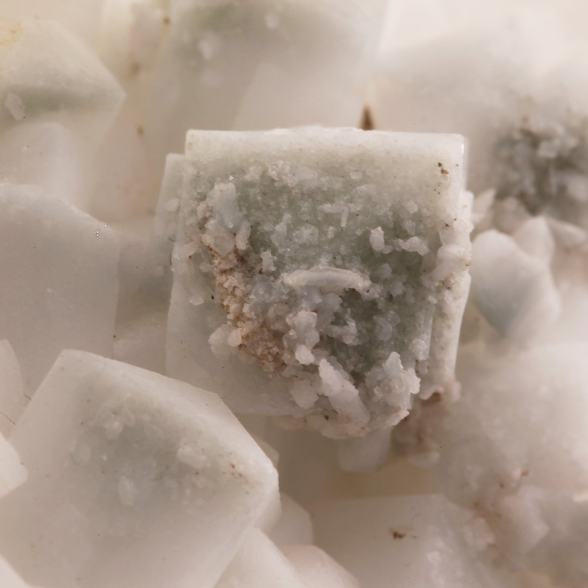 While the California State Gem Mine / Dallas Gem Mine is world famous for its stupendous Benitoite crystals, the often ignored species from this locality is the white Natrolite in which the Benitoites are found. As a matter of fact, the Natrolite is often dissolved away with hydrochloric acid in order to expose the Benitoites hidden within.