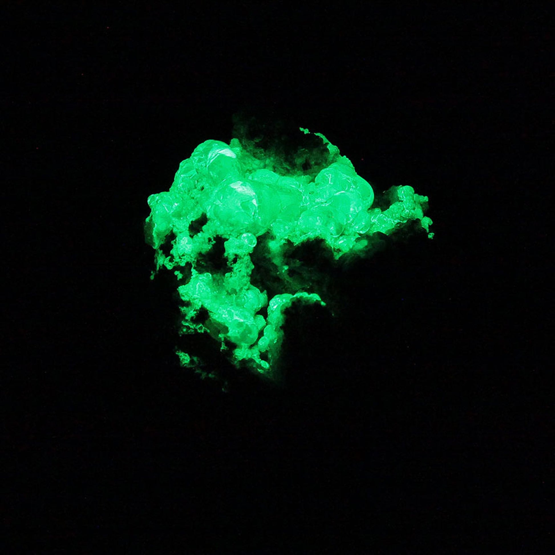 It has been said that gamma spectroscopic data indicates that this brilliant color is possibly attributed to the presence of uranium in the form of a uranyl (UO2 2+) molecule! I suppose it's not terribly surprising that uraniferous Opal would have this kind of fluorescence, but it's certainly rare and very attractive.