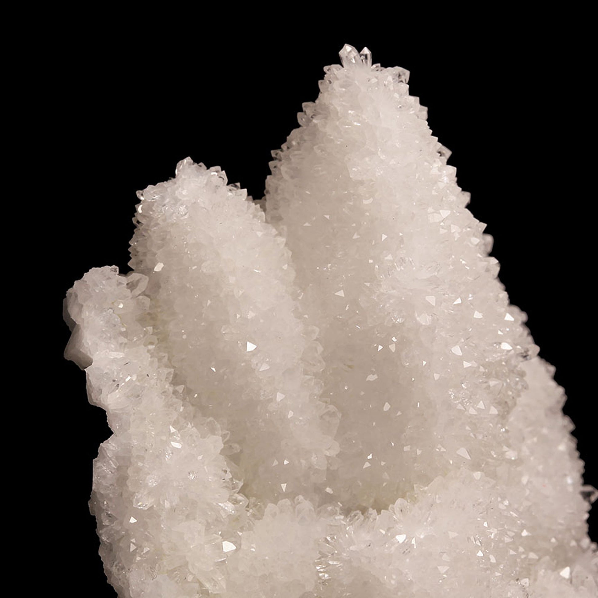 These specimens are some of the most classic Quartz after Calcite "casts" from any world locality. They are sometimes called epimorphs or perimorphs depending upon who you ask. With that said, this specimen is a fantastic example showing the perfect scalenohedral form of the previous Calcite crystals which were replaced, being coated by very small, almost "sugary", gem quality, colorless Quartz crystals. The Calcite crystals were then dissolved away by a solution that entered the pocket at a later date, leaving behind only the Quartz crystal "crust". A wonderful specimen from a district that produced some of the most classic "casts" from all of Colorado.