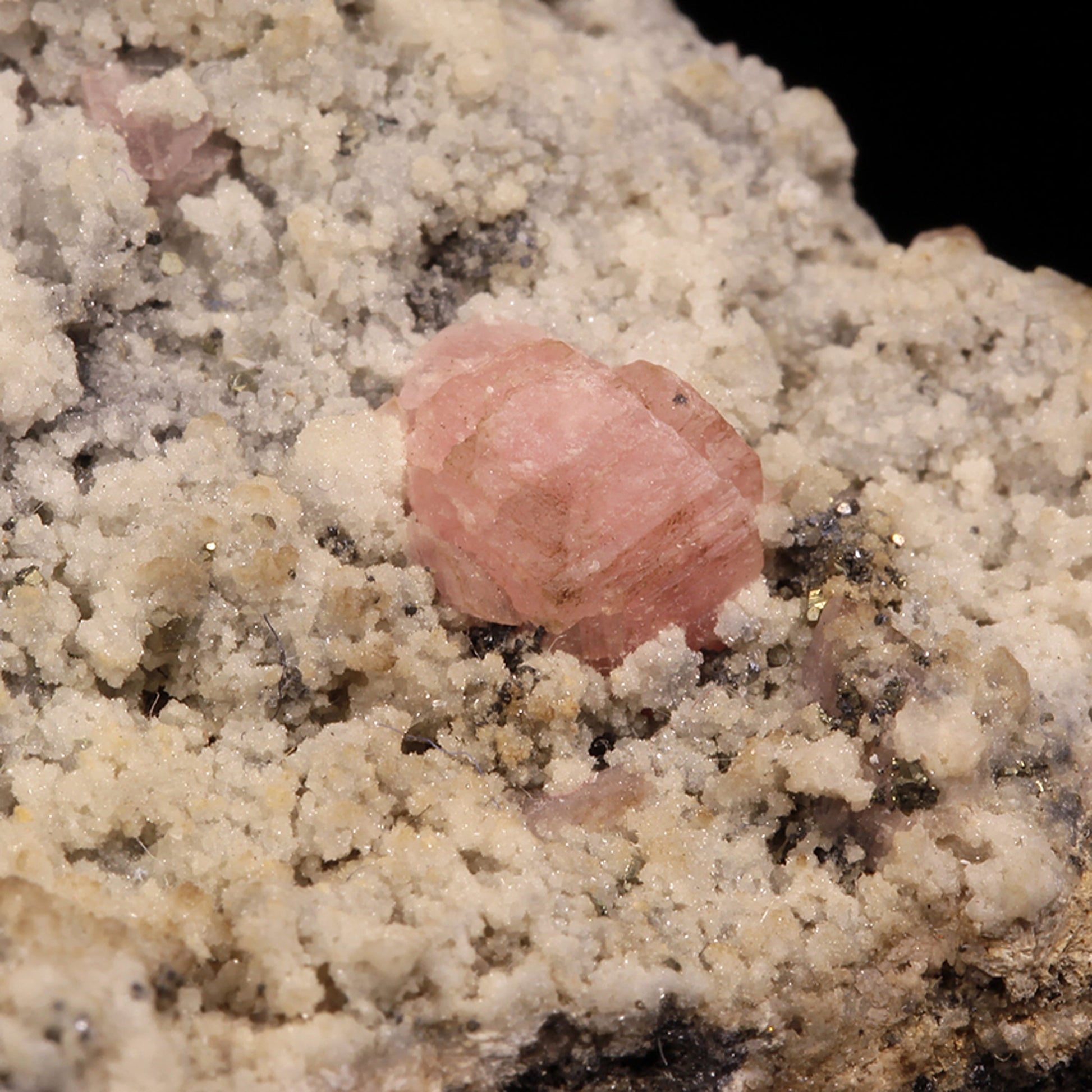 The Champion Mine is well known to Colorado collectors, but specimens are seldom available on the market. This piece features several sharp, well-formed, lustrous, translucent, vivid pink color, compressed rhombohedra of Rhodochrosite forming semi-"rosette"-shaped groups sitting on contrasting white Quartz and black Sphalerite matrix with small bits of Pyrite sprinkled here and there. This is a showy display specimen from this hard-to-find locality in southwestern Colorado. The largest Rhodo measures about 7 mm, and they are beautiful up close.