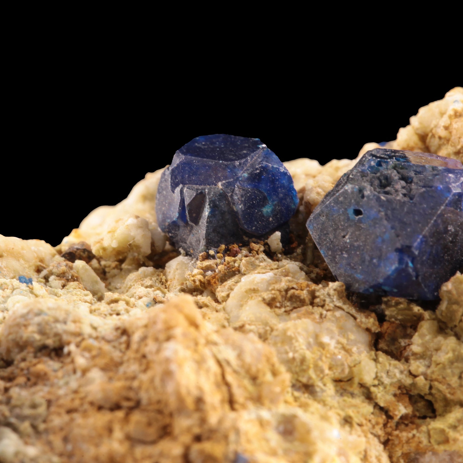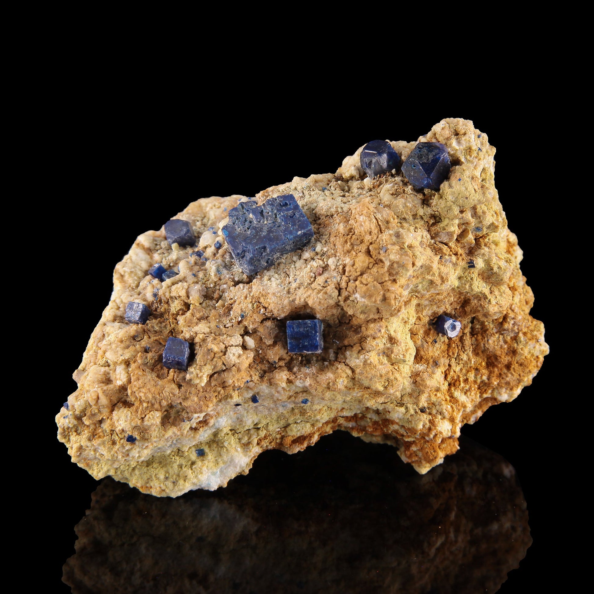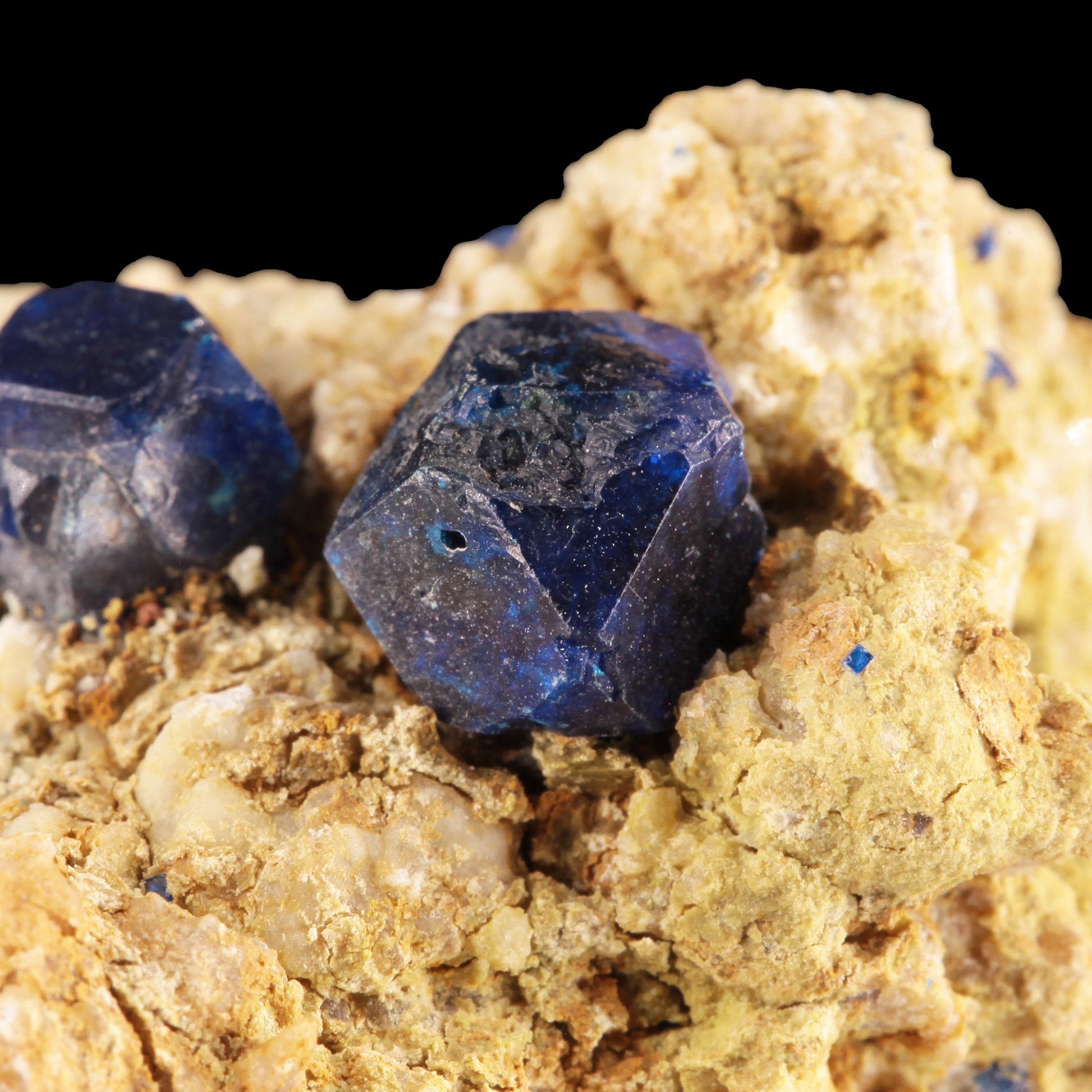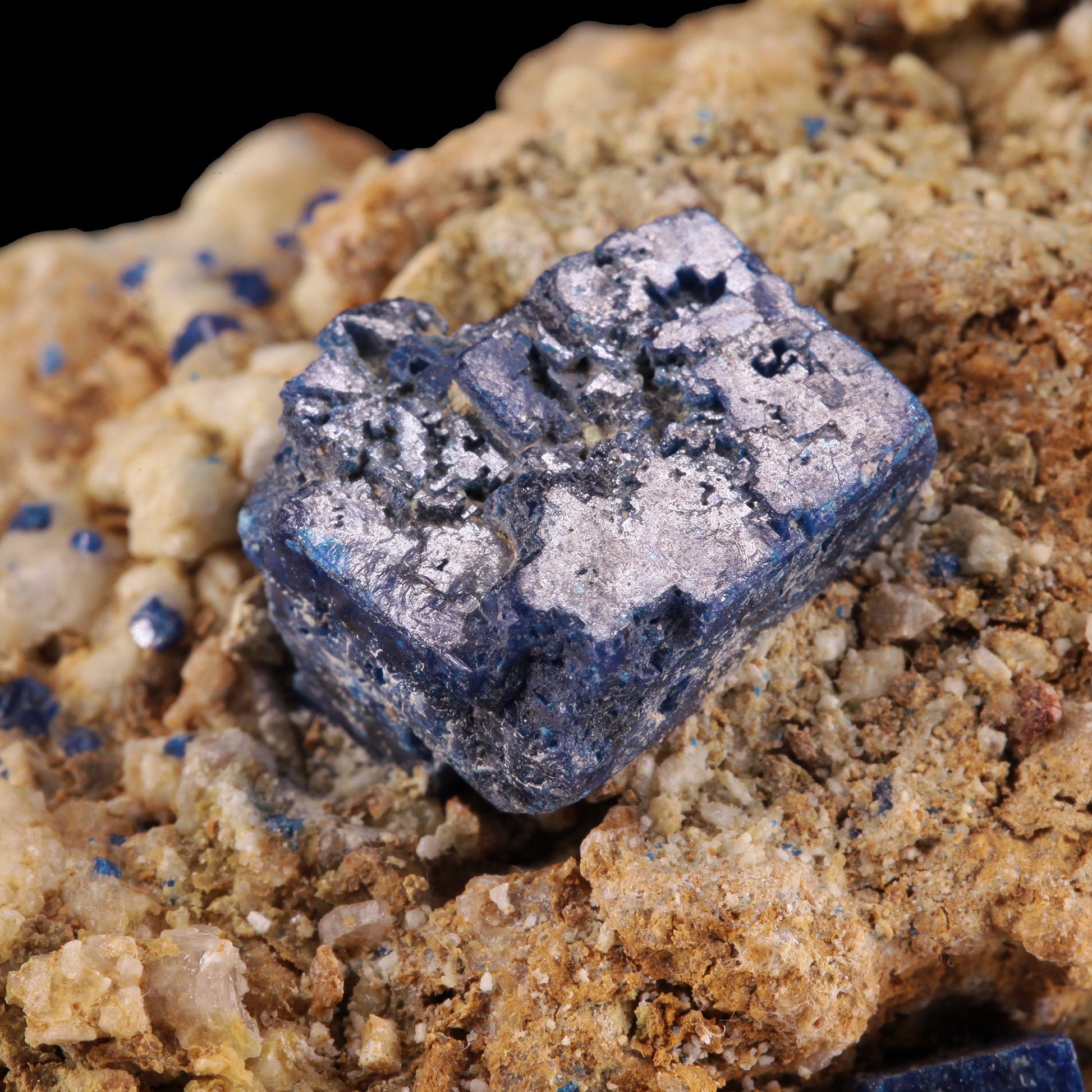 This is a rare MATRIX specimen of Boleite featuring many fine quality, sharp, lustrous, translucent, rich blue color cubic crystals measuring up to 1.1 cm on edge. Some of the crystals show slight octahedral modifications on the corners. One of my favorite aspects of the piece is not the large crystals, but the little micro crystals that are scattered all over the piece, as they are sharper, gemmier and show excellent crystal form. Keep in mind that the vast majority of Boleite crystals you'll find are loose singles, free of matrix, so to find a piece like this with multiple crystals on matrix is a big deal. This piece is from the type locality for Boleite, and it's exceedingly rare to find specimens on the market today.