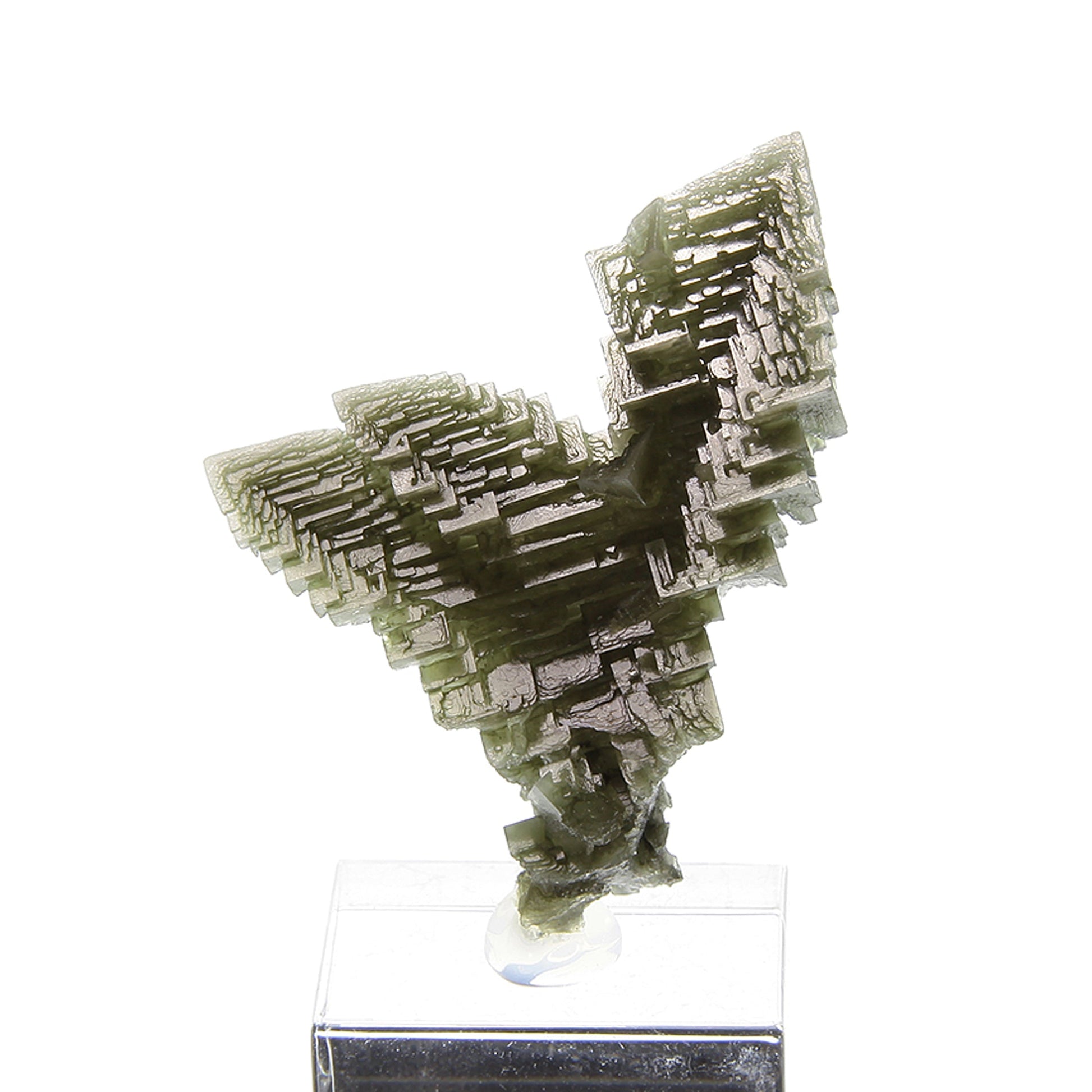 The captivating green hue is what immediately draws the eye on this piece. The crystallization is superb for the species with amazingly sharp, lustrous, skeletal cubic faces and gorgeous three-dimensional form. The green hue is caused by inclusions of the very rare copper halide, Tolbachite, which is only found in a few places in the world. I'm told from our source that the material also has small inclusions of sulfur, bitumens and covellite, interestingly enough. Very attractive for the species, so much so that many collectors who ordinarily wouldn't have an interest in Halite have decided to add them to their collections.