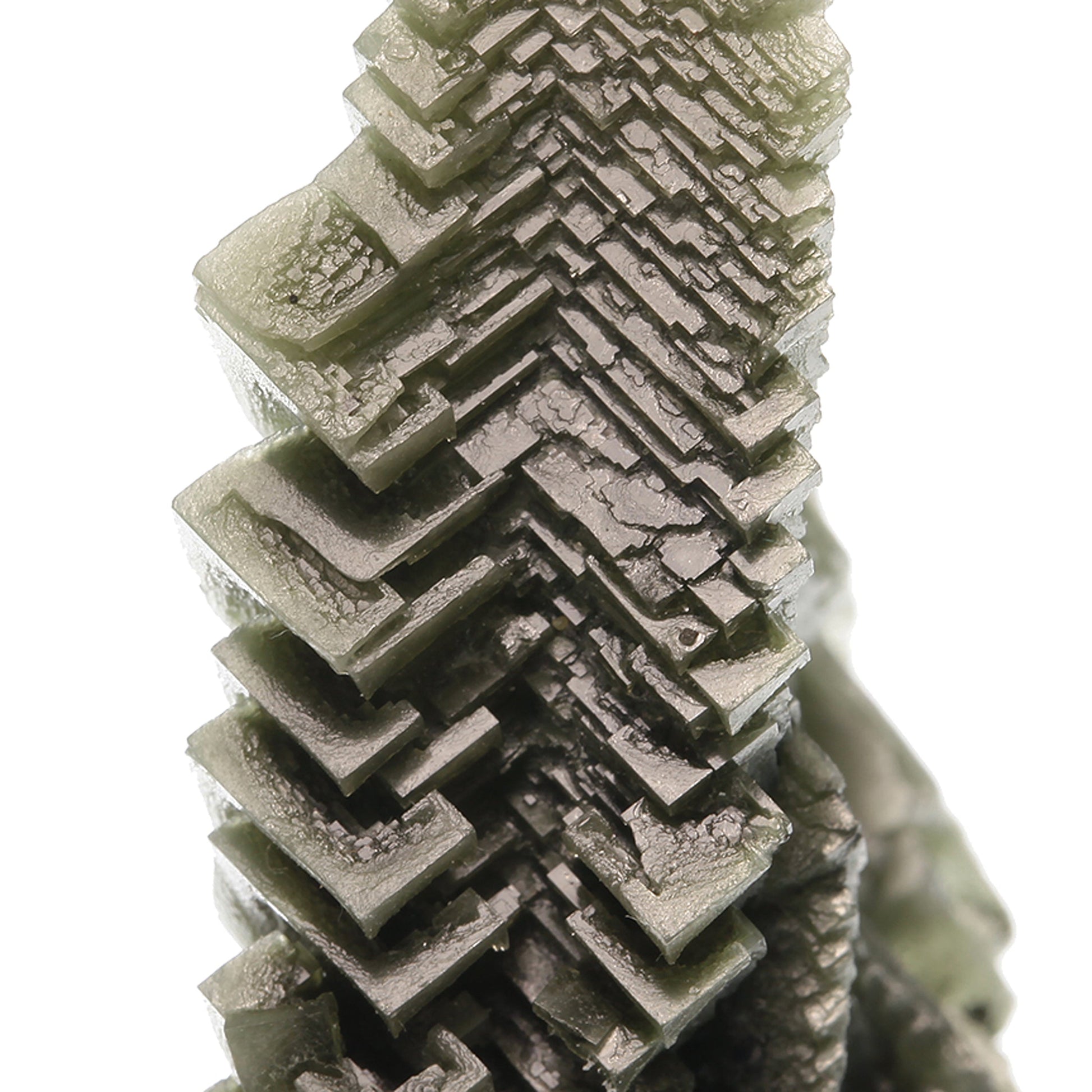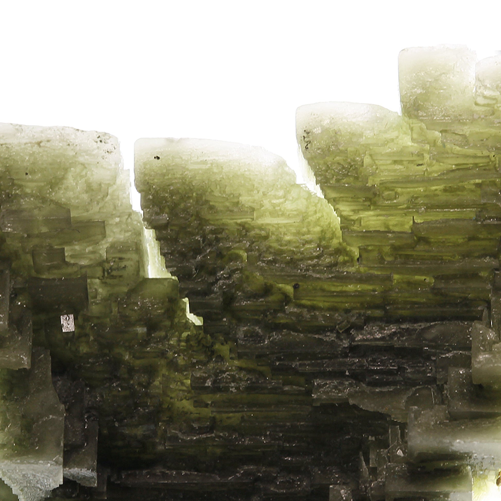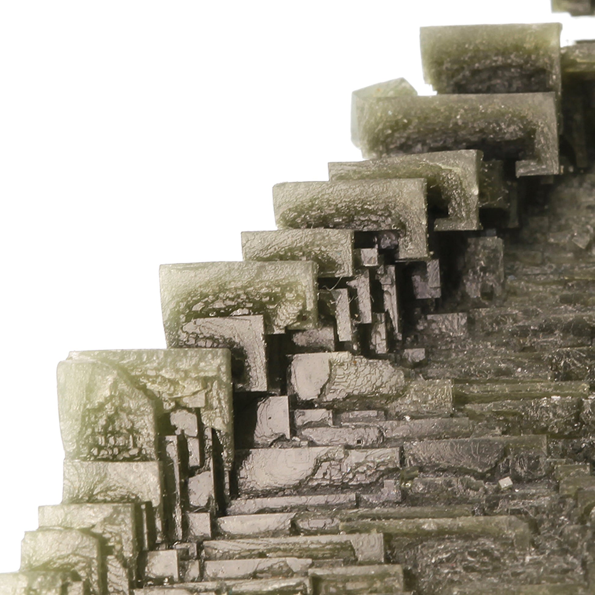 The captivating green hue is what immediately draws the eye on this piece. The crystallization is superb for the species with amazingly sharp, lustrous, skeletal cubic faces and gorgeous three-dimensional form. The green hue is caused by inclusions of the very rare copper halide, Tolbachite, which is only found in a few places in the world. I'm told from our source that the material also has small inclusions of sulfur, bitumens and Covellite, interestingly enough. Very attractive for the species, so much so that many collectors who ordinarily wouldn't have an interest in Halite have decided to add them to their collections.