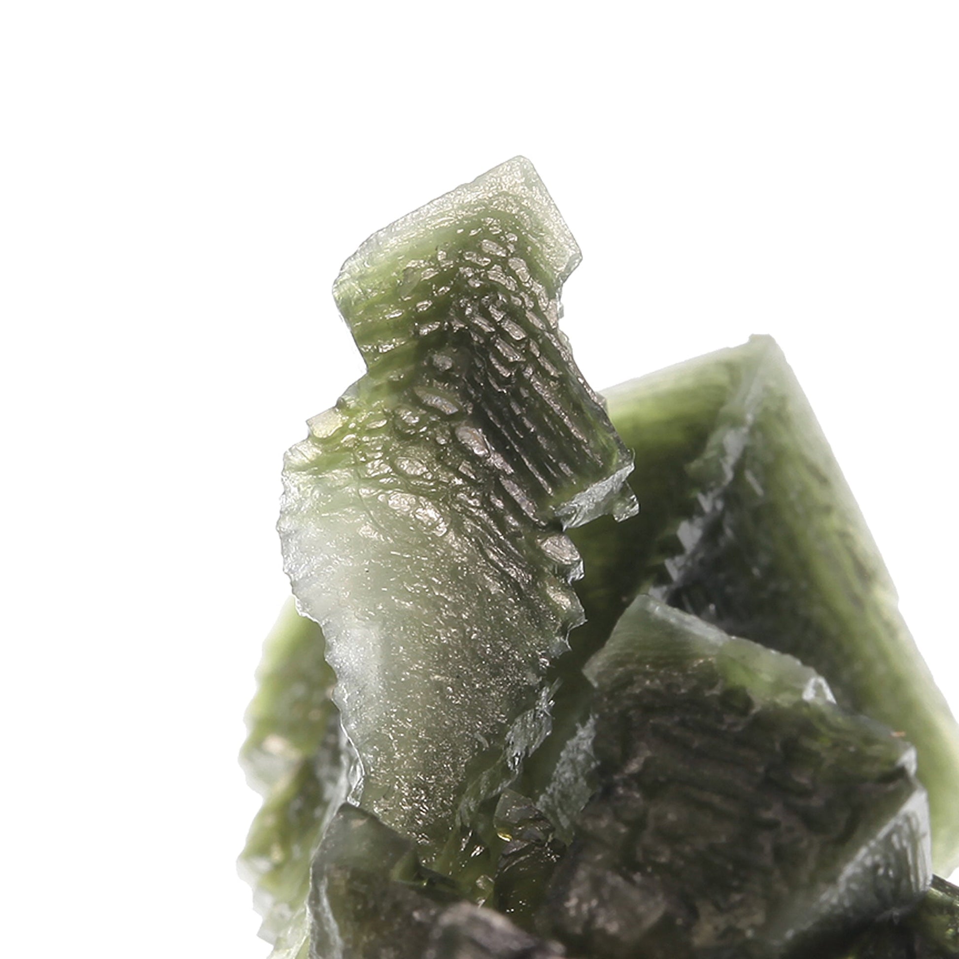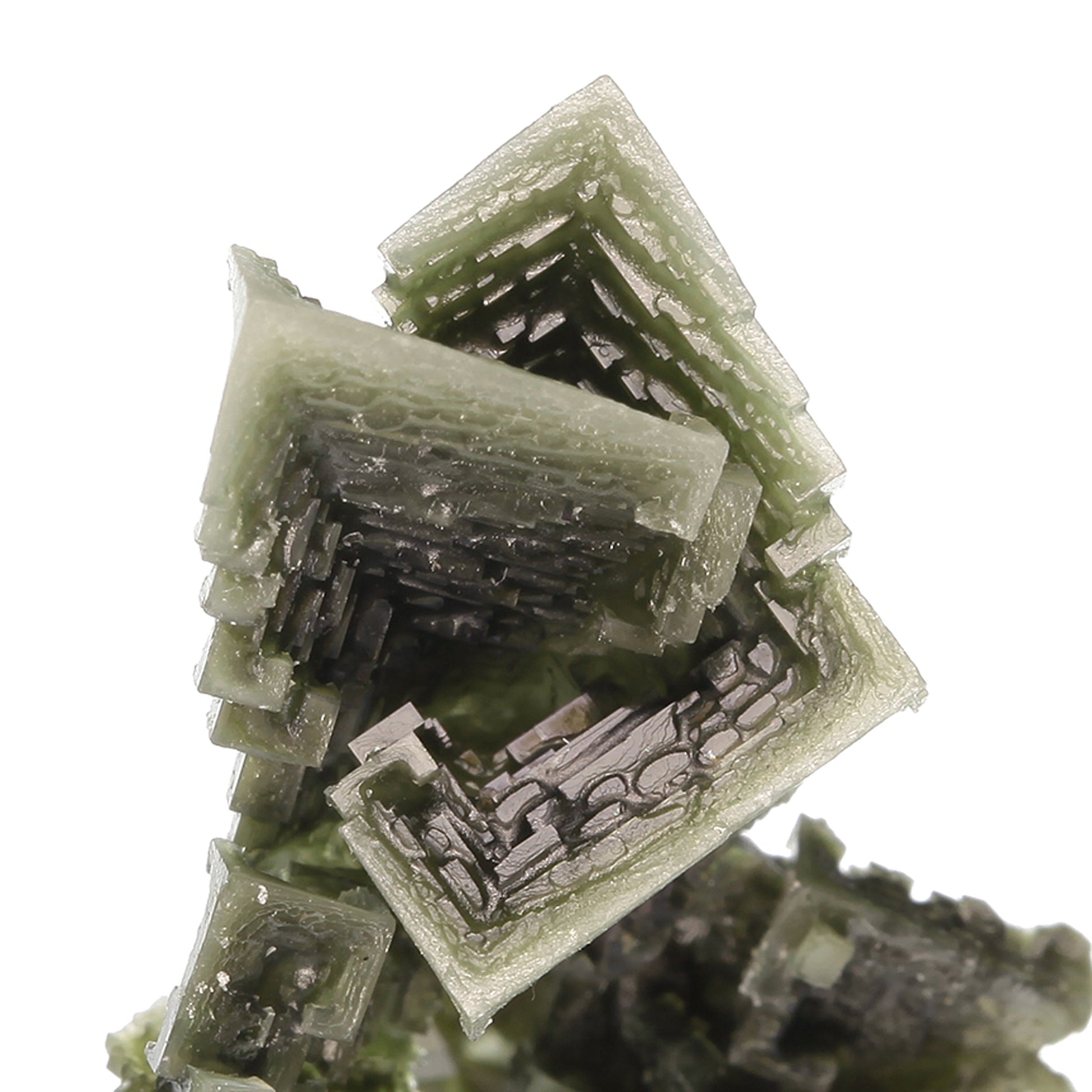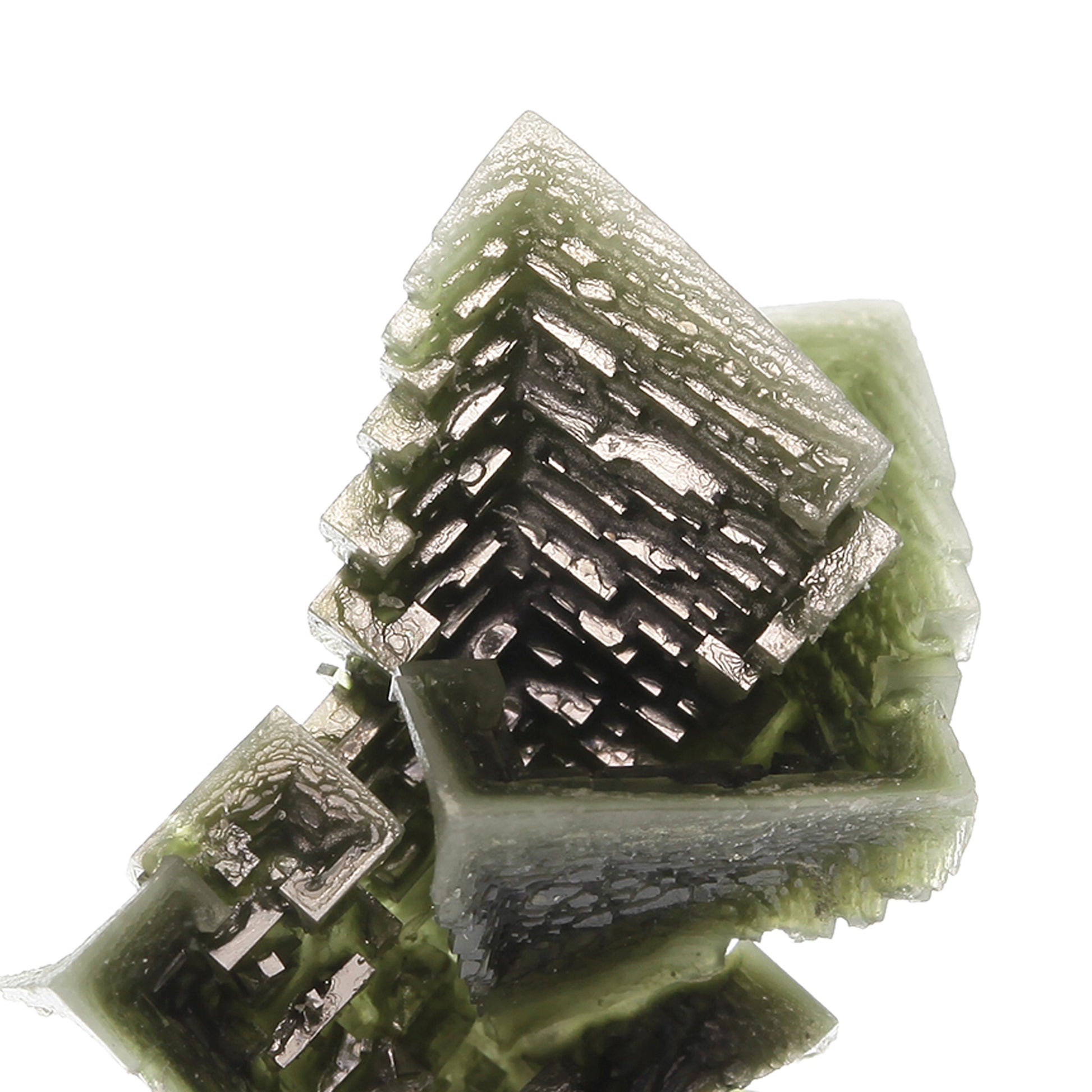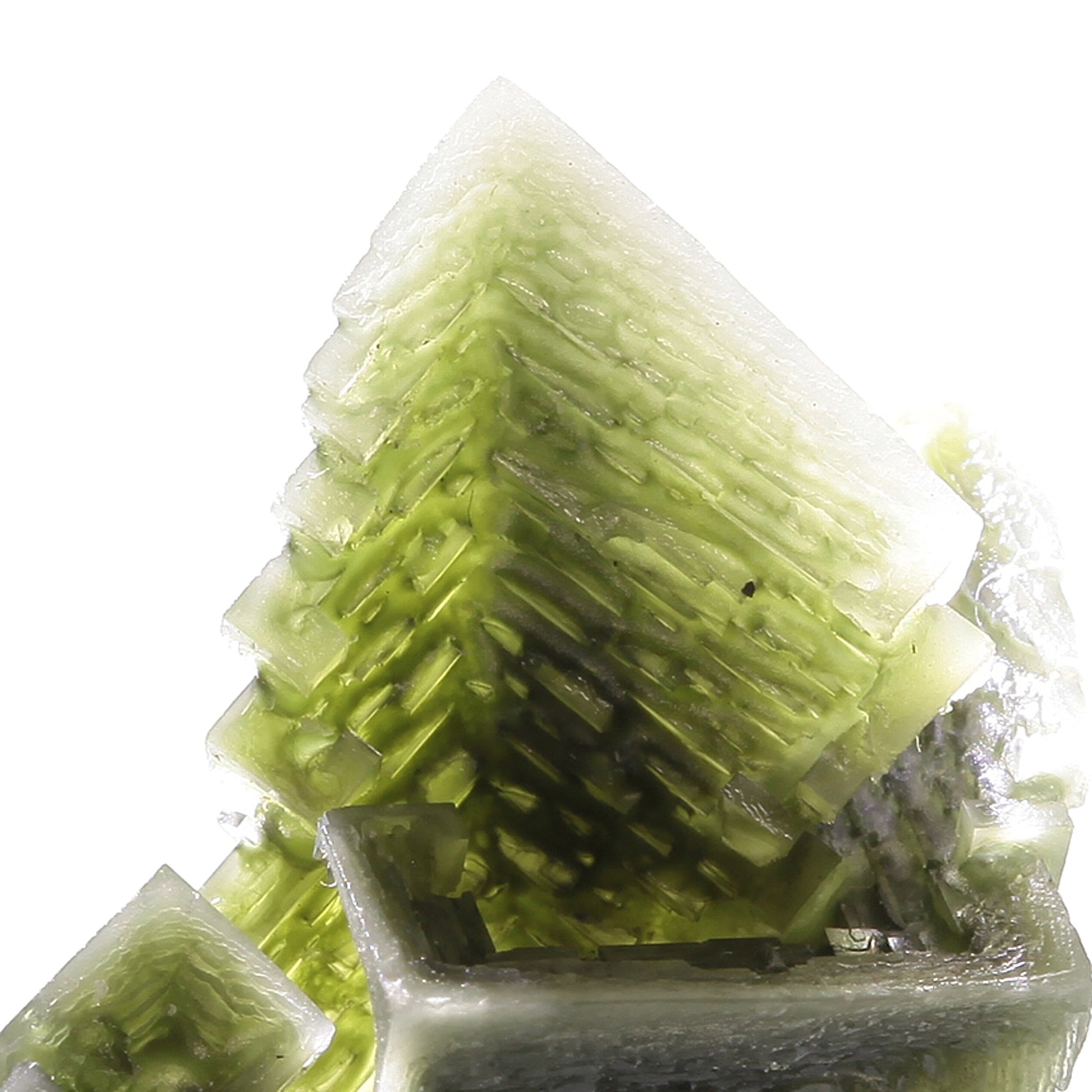 The captivating green hue is what immediately draws the eye on this piece. The crystallization is superb for the species with amazingly sharp, lustrous, skeletal cubic faces and gorgeous three-dimensional form. The green hue is caused by inclusions of the very rare copper halide, Tolbachite, which is only found in a few places in the world. I'm told from our source that the material also has small inclusions of sulfur, bitumens and Covellite, interestingly enough. Very attractive for the species, so much so that many collectors who ordinarily wouldn't have an interest in Halite have decided to add them to their collections.