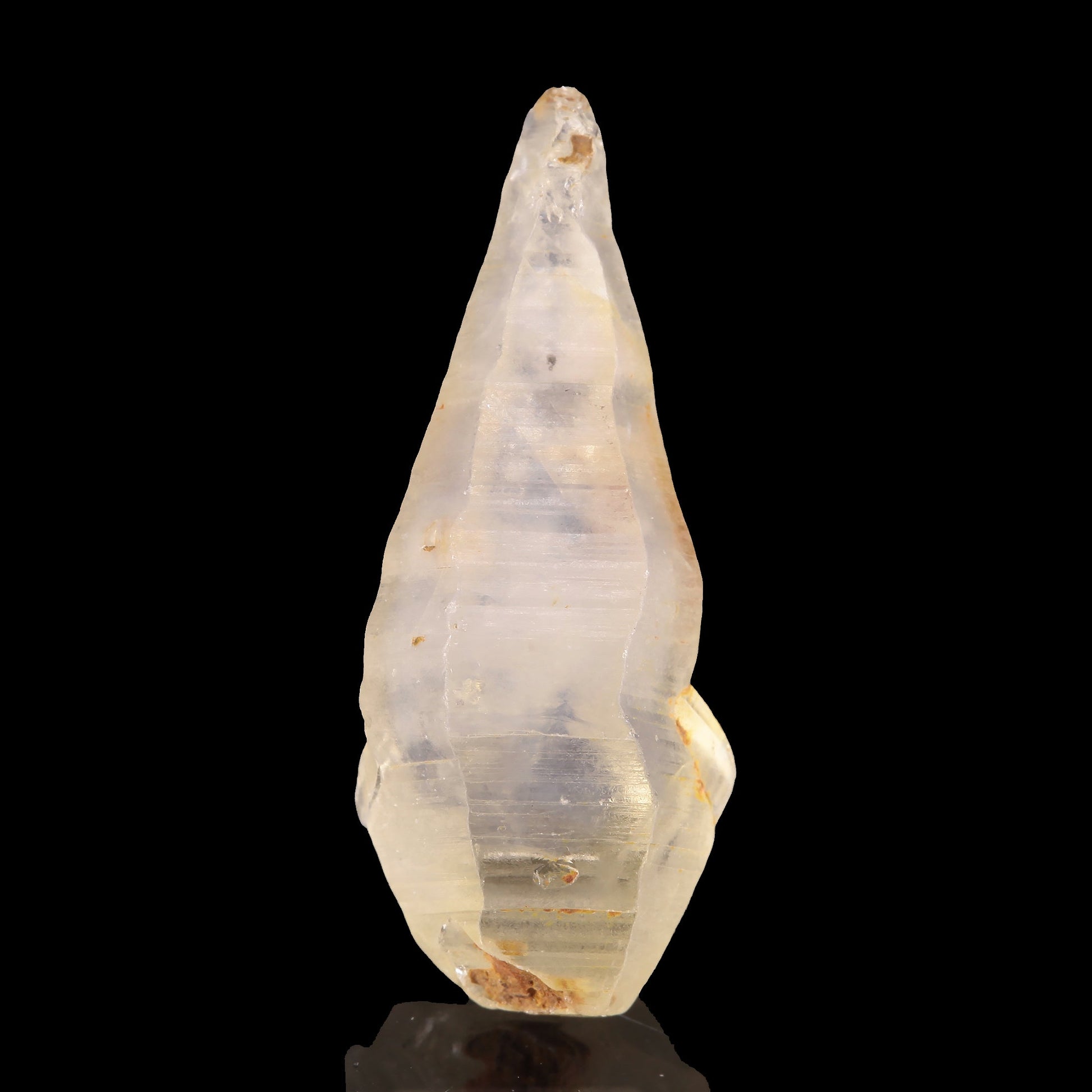 This piece is a good quality, very sharp (not rounded or water worn), rather lustrous, well-formed, euhedral, hexagonal, striated, crystal with a soft yellow hue. The crystal is translucent for the most part, but certainly not opaque. No major damage anywhere, and it's nearly doubly terminated, were it not for a small bit of embedded matrix on the lower termination. If you collect gem crystals, thumbnails or you've always wanted a really good Sapphire crystal for your collection, this is a good piece for the price.