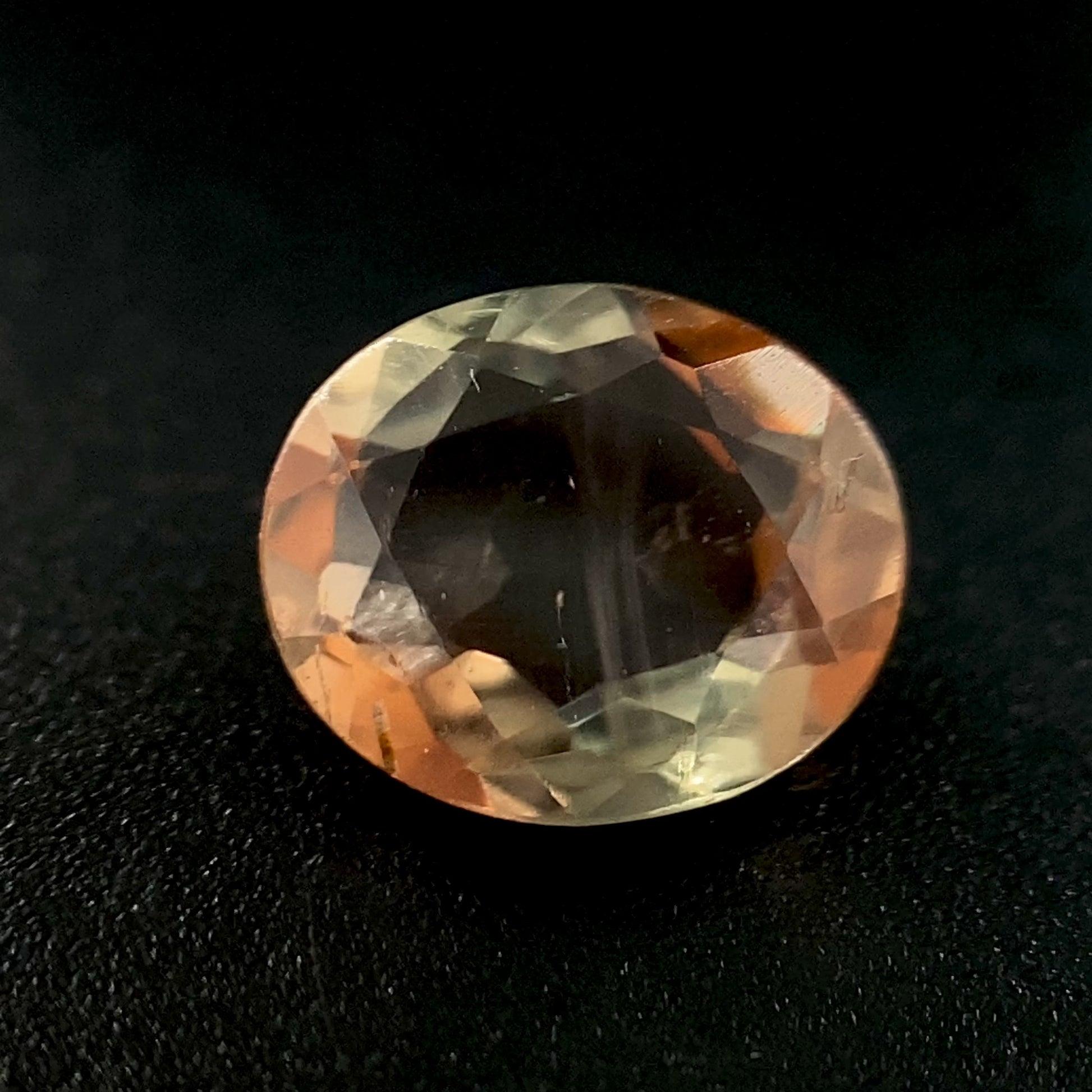 A fine quality, VVS "Oval" cut gemstone of Andalusite from Bahia, Brazil. The gem shows excellent pleochroism with a combination of a soft reddish-orange hue and a light yellow-green tone face up. There are only a few worldwide localities that produce gem quality Andalusite, and this brightly colored stone would make a great addition to a gem suite.