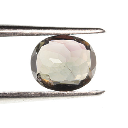 Axinite is typically considered a collector's stone. This is a beautiful amber color gem with an "Oval Brilliant" cut. Depending upon the light under which it's viewed, the stone can show flashes of golden, pinkish-purple, yellow-green and a clove brown hue. It also shows trichroism, as it does a slight change color when rotated in different directions.