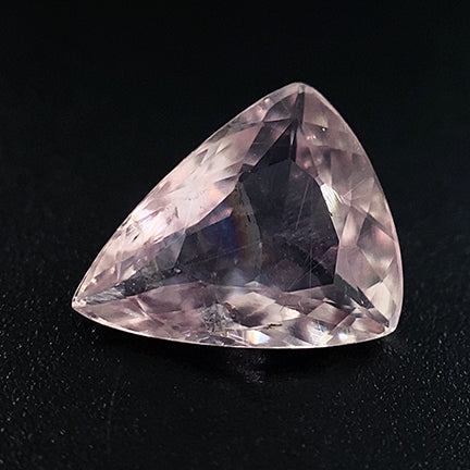 This Diaspore is a beautiful "Brilliant Trillion" cut gem with very very slight inclusions and a gentle purplish-pink hue in incandescent lighting but shows more of a yellow-pink hue in LED lighting. Outdoors, the color is more of a pure pink, with no purple overtones. The fact that the stone is over 1 carat makes it a collector quality gemstone.