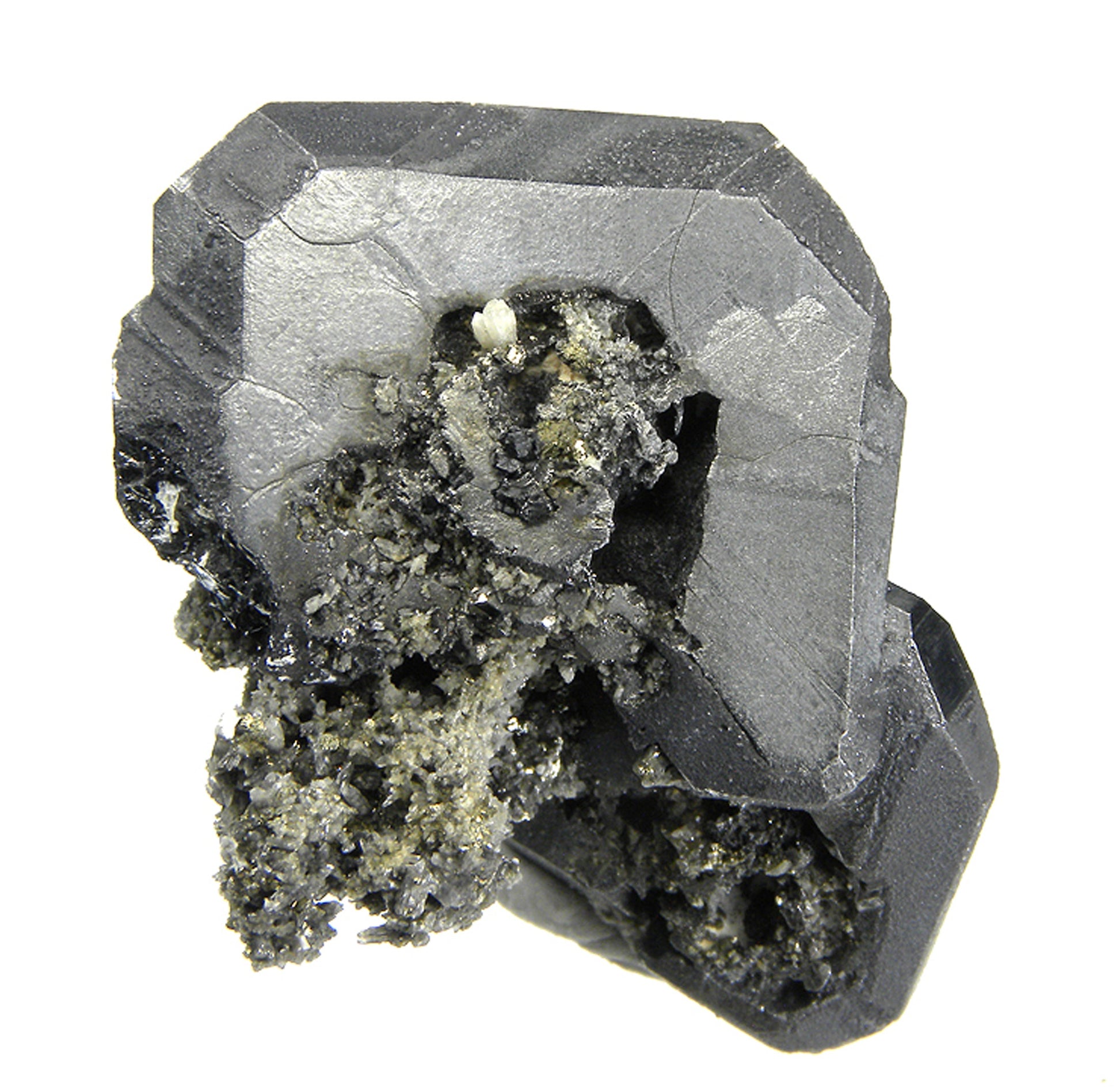A pair of very well-formed, sharp, semi-lustrous, soft metallic grey colored tabular blades of Bournonite are intergrown to create this eye-catching little display specimen. The crystals are virtually damage free, save for a very small contact on one edge. For an added touch, the crystals are associated with micro grey Quartz. Great quality and rather aesthetic for the material. From a find in June of 2007.